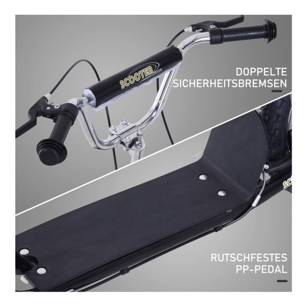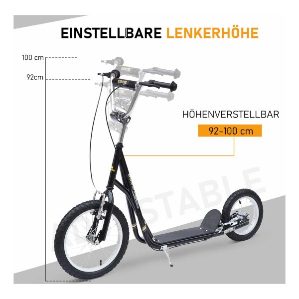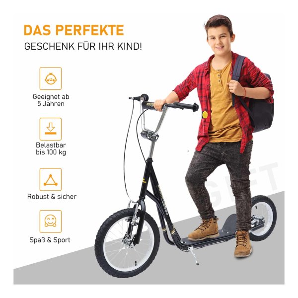 - Dankzij de hoogwaardige metalen velgen van 16″ aan de voorkant en 12″ aan de achterkant, en de luchtbanden, beweeg je lekker snel en geniet je van hoog veercomfort en optimaal rijplezier.