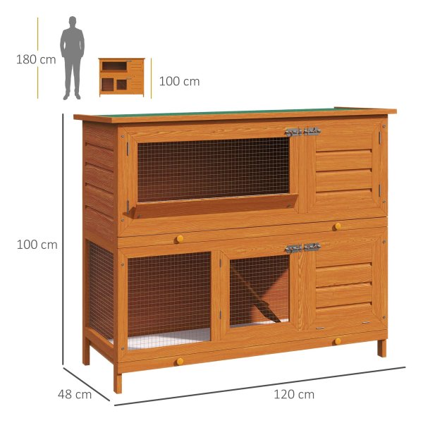 Het knaagdierenverblijf is gemaakt van FIR hout en heeft een totale afmeting van 120L x 48B x 100H cm. Met een gewicht van ongeveer 17 kg is het verblijf stabiel en stevig genoeg om jouw knaagdier veilig te huisvesten.