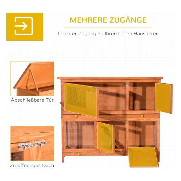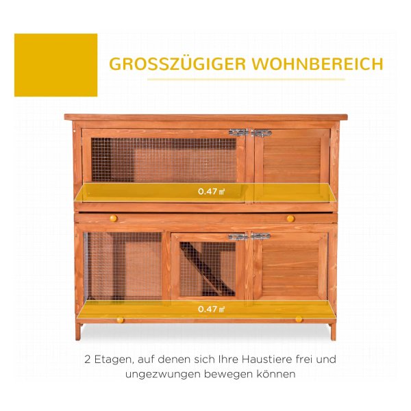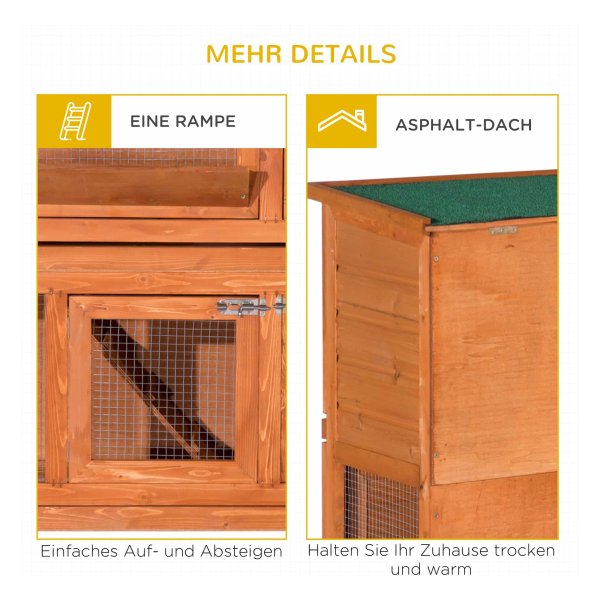 Knaagdierenverblijf – Geel houten – Dubbele verdieping – Asfalt dak