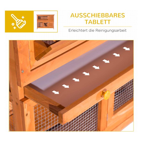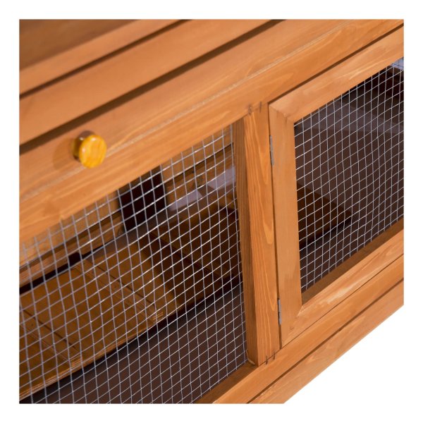 Dit knaagdierenverblijf is niet alleen functioneel, maar ook esthetisch aantrekkelijk. Met de gele houten afwerking past het verblijf mooi in elke omgeving en creëert het een gezellige sfeer voor jouw geliefde huisdier.