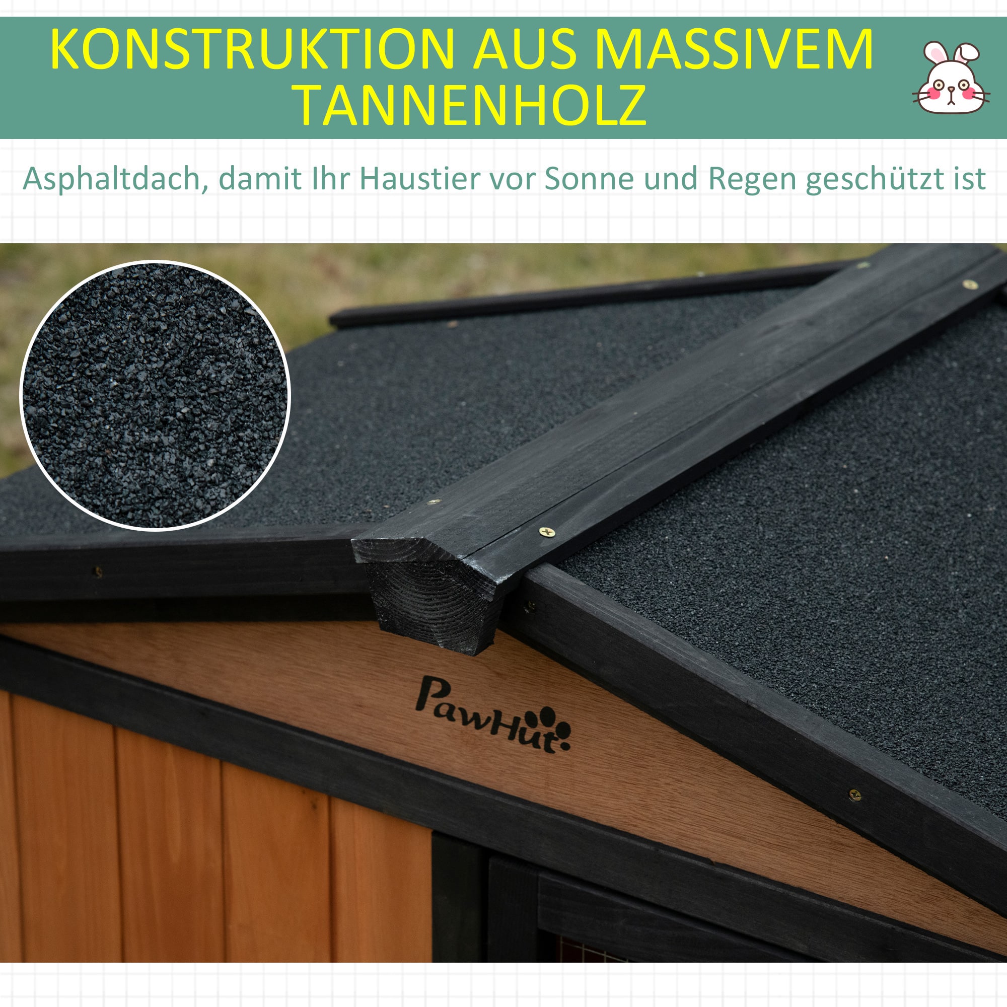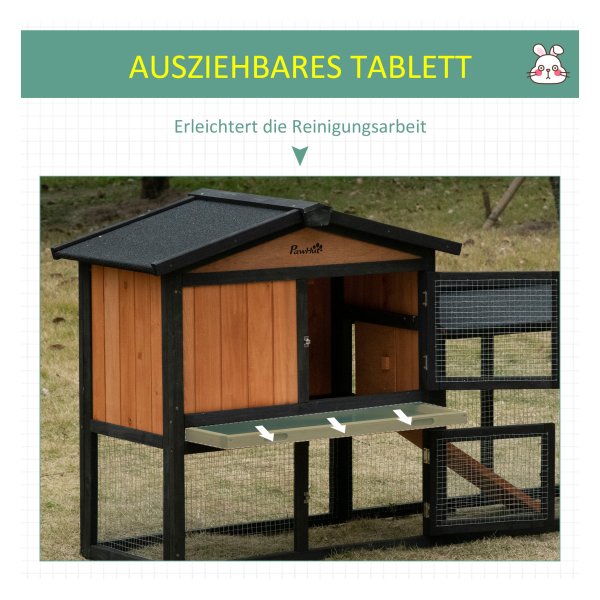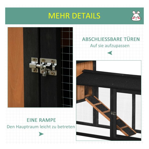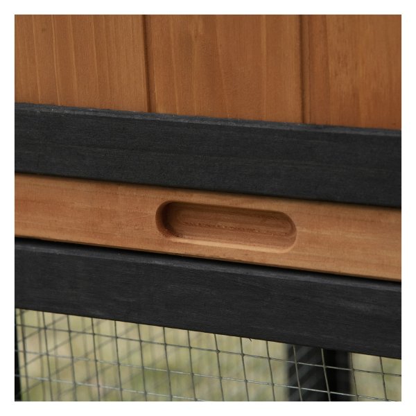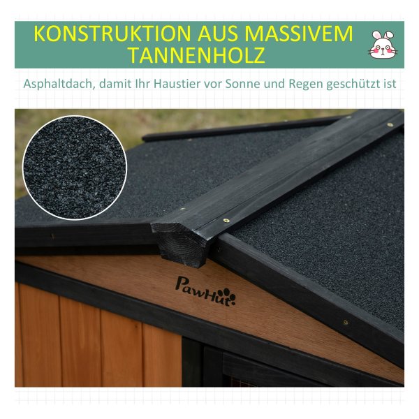 - De dierenstal is gemaakt van duurzaam FIR-hout en staal, waardoor het bestand is tegen alle weersomstandigheden en lang meegaat.
