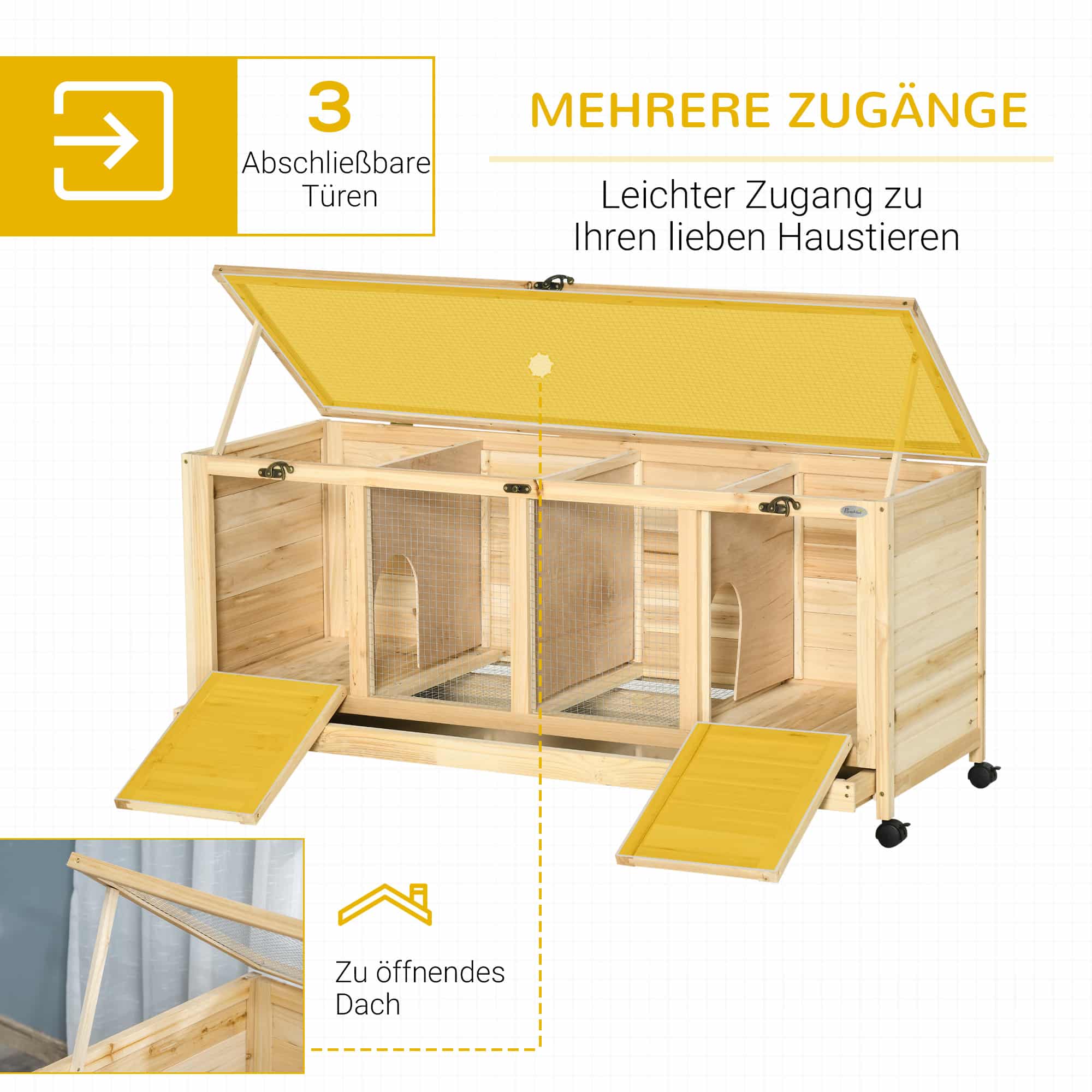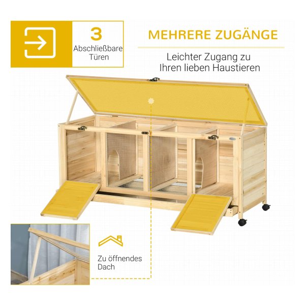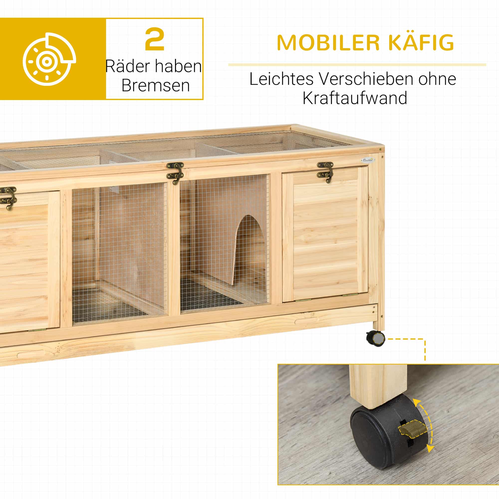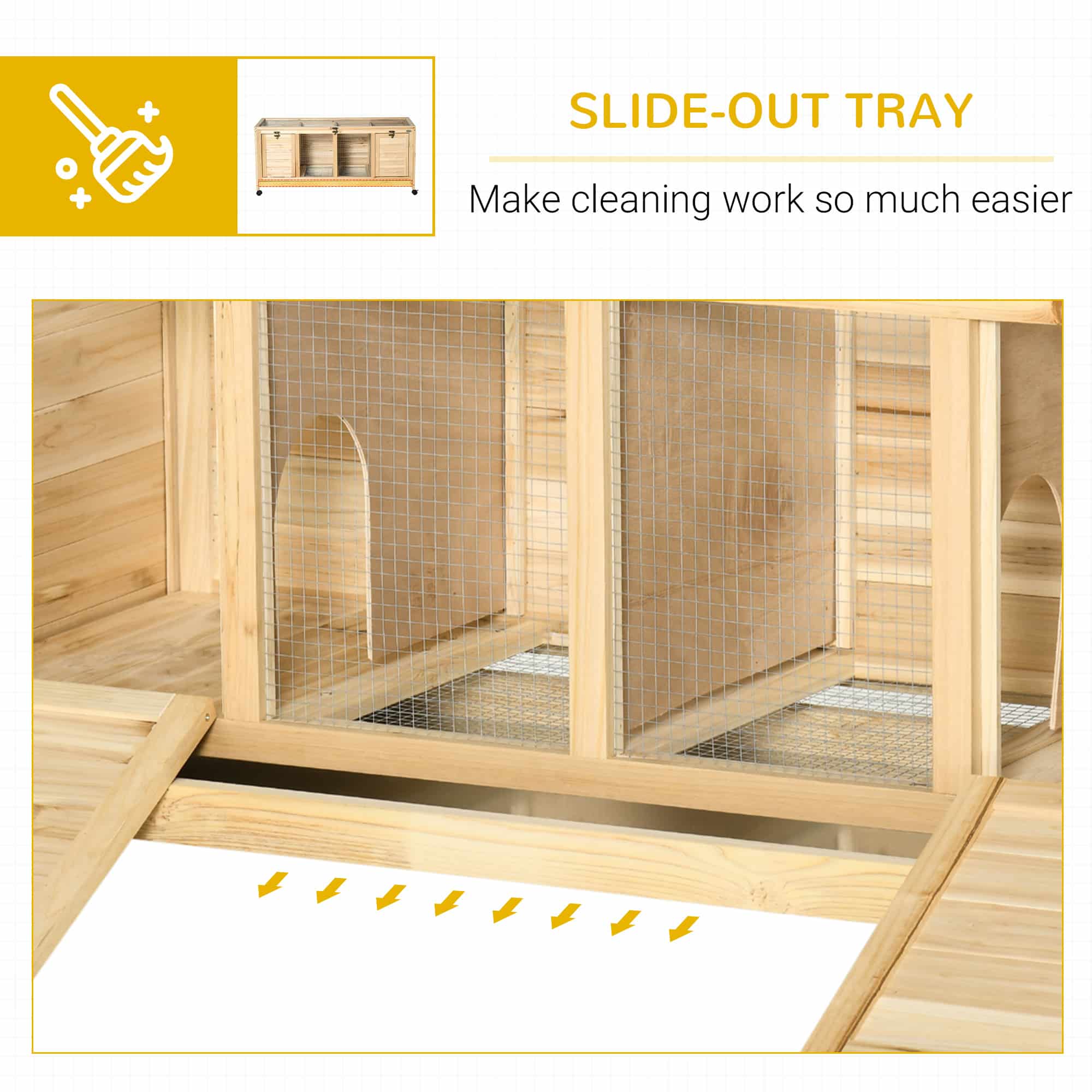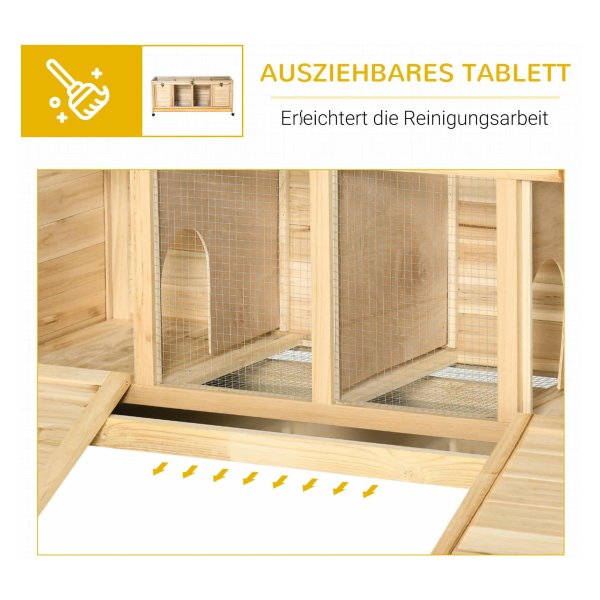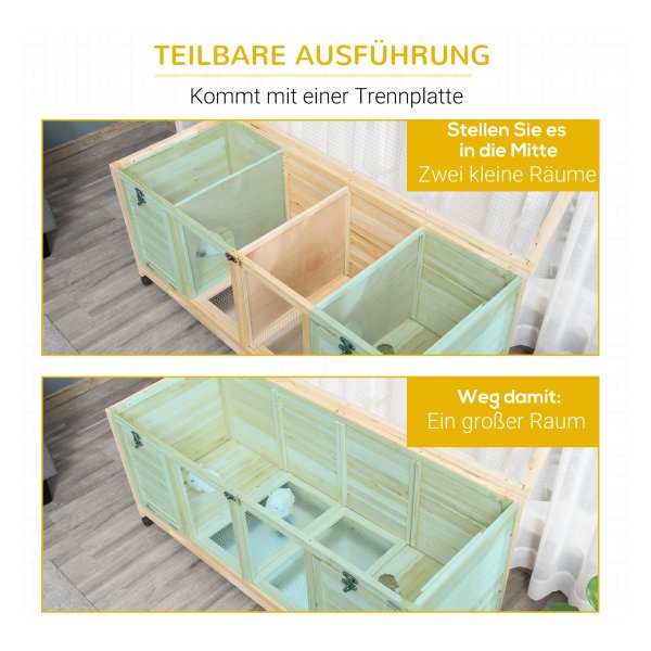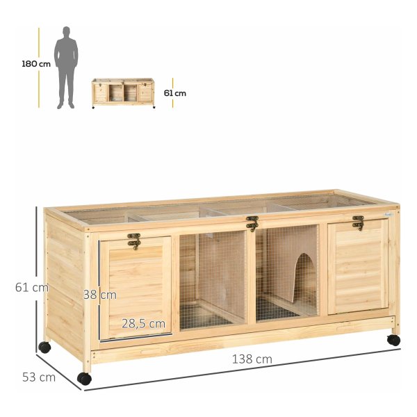 Met afmetingen van 138L x 53B x 61H CM is deze caviakooi ruim genoeg voor jouw huisdieren om comfortabel te bewegen en te spelen. De afmetingen per sectie van 66.5L x 48.6B x 45H CM geven jou de flexibiliteit om de leefruimte naar wens in te richten. De uitschuifbare bodemschaal maakt het schoonmaken van de kooi een fluitje van een cent en bespaart jou kostbare tijd en moeite.