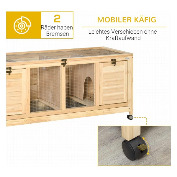 De afsluitbare deuren van de kooi dienen niet alleen als ingang voor jouw huisdieren, maar ook als ladders voor extra speelmogelijkheden. Met wielen onder de kooi is deze caviakooi eenvoudig te verplaatsen in huis, zodat je de dieren altijd dicht bij je kunt houden. De ruime deur van 28,5L x 38H CM zorgt voor gemakkelijke toegang tot de kooi, terwijl de bodemschaal van 133L x 53B x 5H CM voldoende ruimte biedt voor bodembedekking en speelgoed voor de dieren.