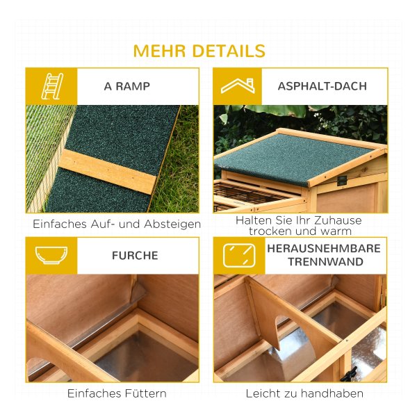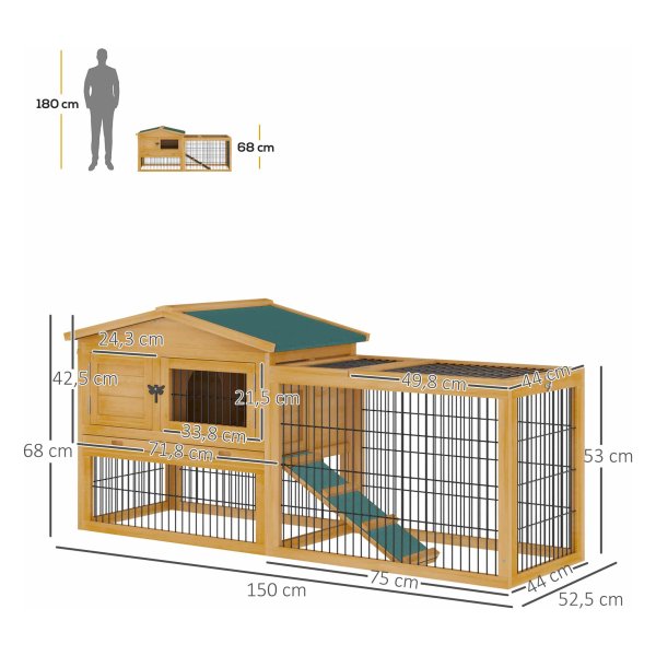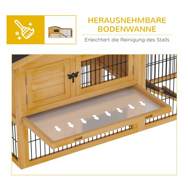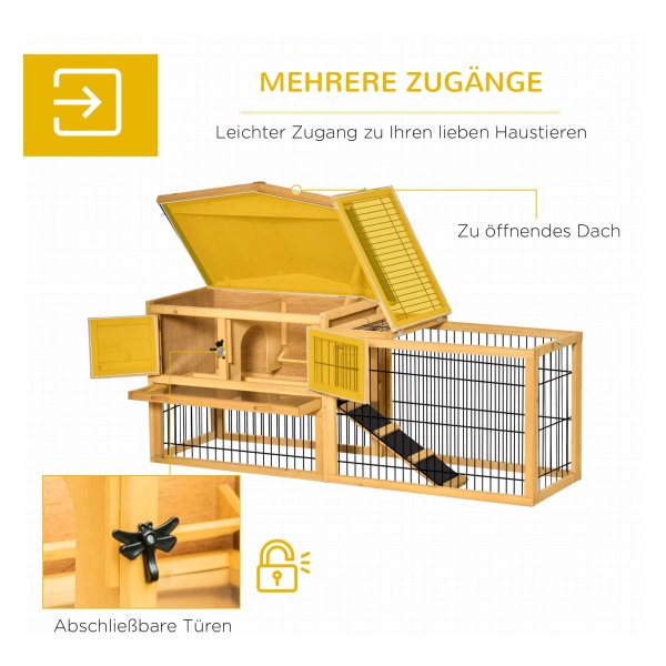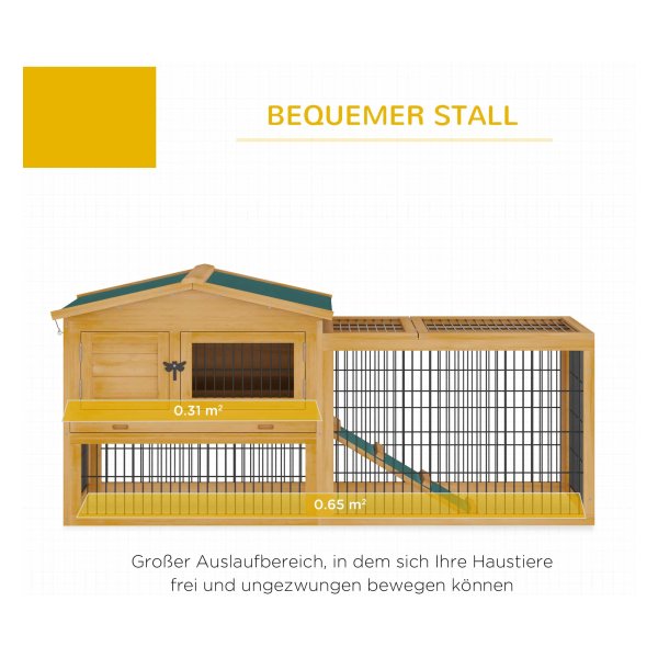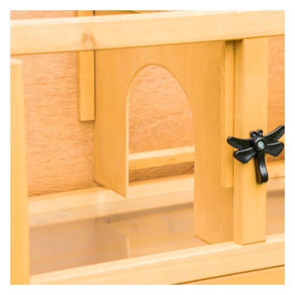 Met een handige helling kunnen de cavia’s gemakkelijk in en uit het hok bewegen, terwijl het dak kan worden geopend voor eenvoudige toegang tot het interieur. Bovendien is het hok uitgerust met een stevig hek en een veiligheidsslot voor gemoedsrust.