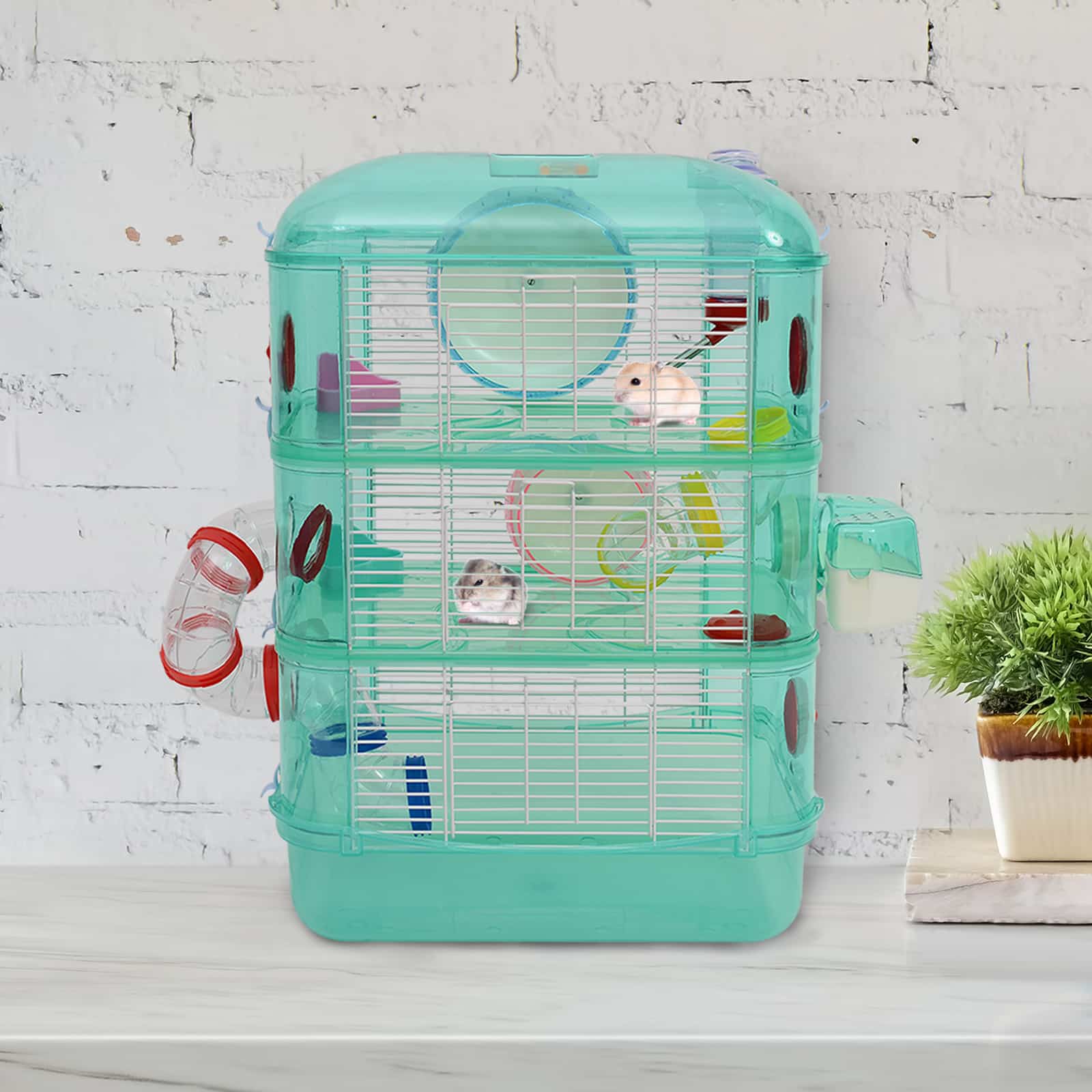 Met het metalen rooster rondom de kooi zorg je voor voldoende ventilatie en een veilige omgeving voor jouw huisdier. De kooi heeft drie niveaus en is voorzien van wielen, waardoor jouw kleine dier genoeg ruimte heeft om te spelen, te rusten en zich te vermaken.