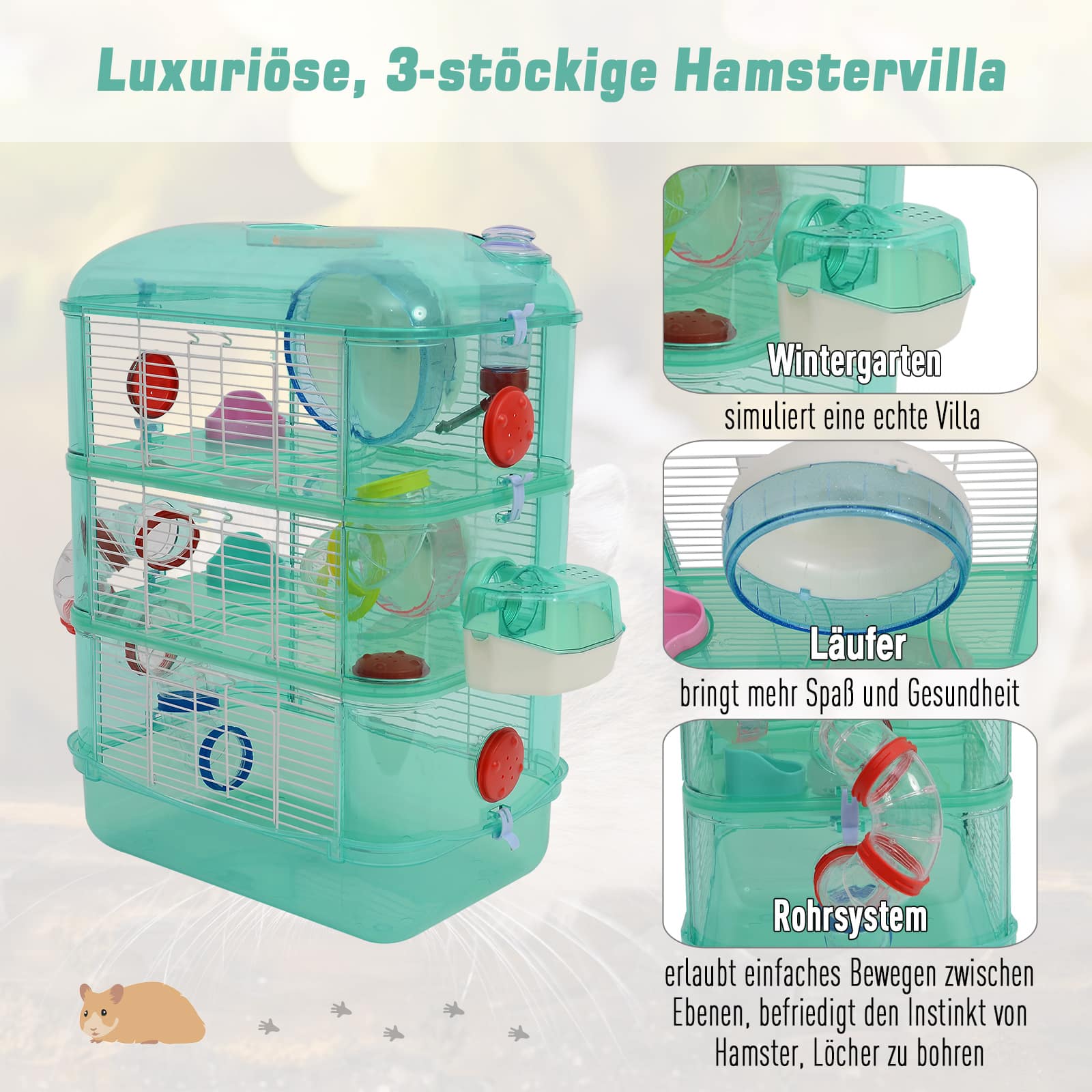 Deze dierenkooi is een ideale verblijfplaats voor jouw kleine huisdier. De kooi heeft een vrolijk groen design en is gemaakt van duurzaam metalen grille en hoogwaardig plastic. Het biedt niet alleen een gezellige slaapplek, maar ook een leuke speeltuin voor jouw huisdier.