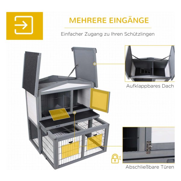 - De verschillende deuren zorgen voor eenvoudige toegang voor jou en jouw huisdieren, waardoor je ze gemakkelijk kunt verzorgen en aandacht kunt geven.