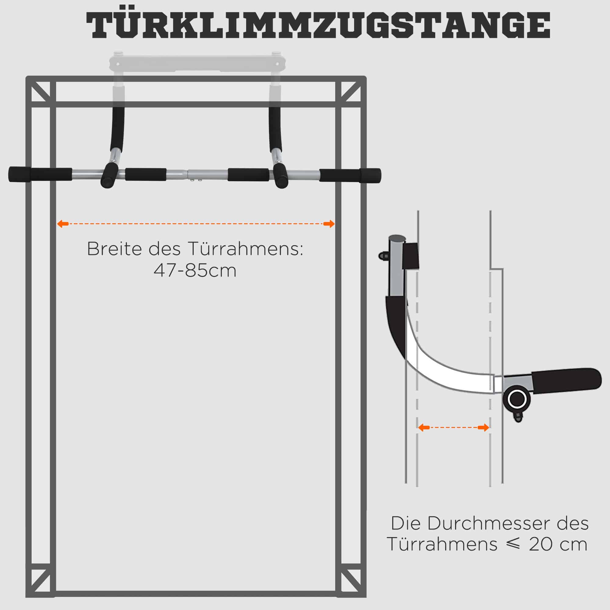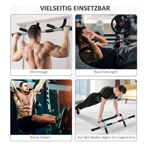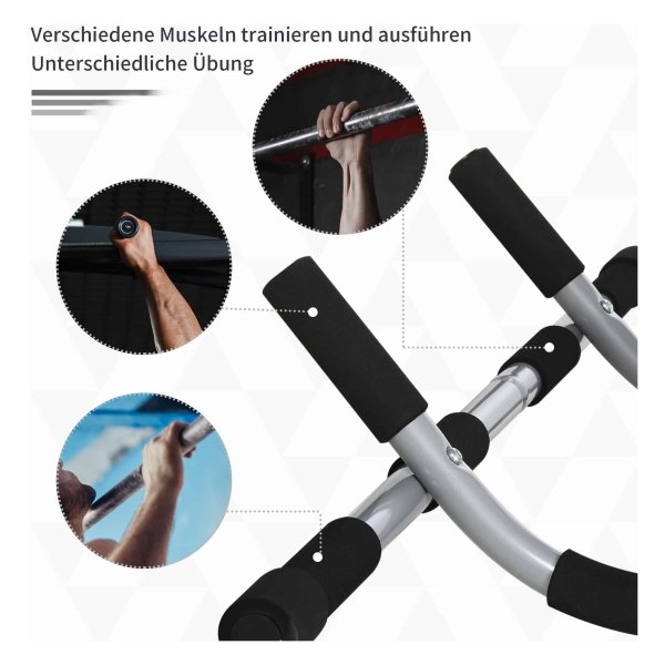 Deuroefeningen – – Multifunctioneel deurrek – Staal – Zwart & grijs