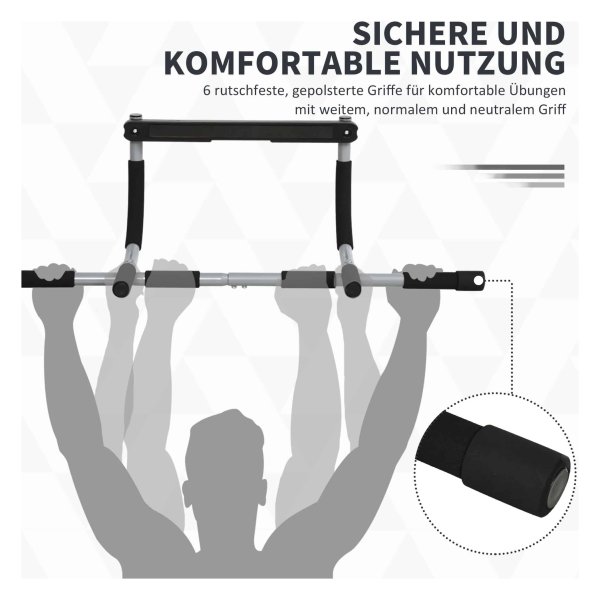 Met dit multifunctionele deurrek kun je een breed scala aan deuroefeningen uitvoeren, van pull-ups tot push-ups en nog veel meer. De verschillende grijpposities zorgen voor comfort en veiligheid tijdens de training, zodat jij je kunt focussen op het maximaliseren van je workout.