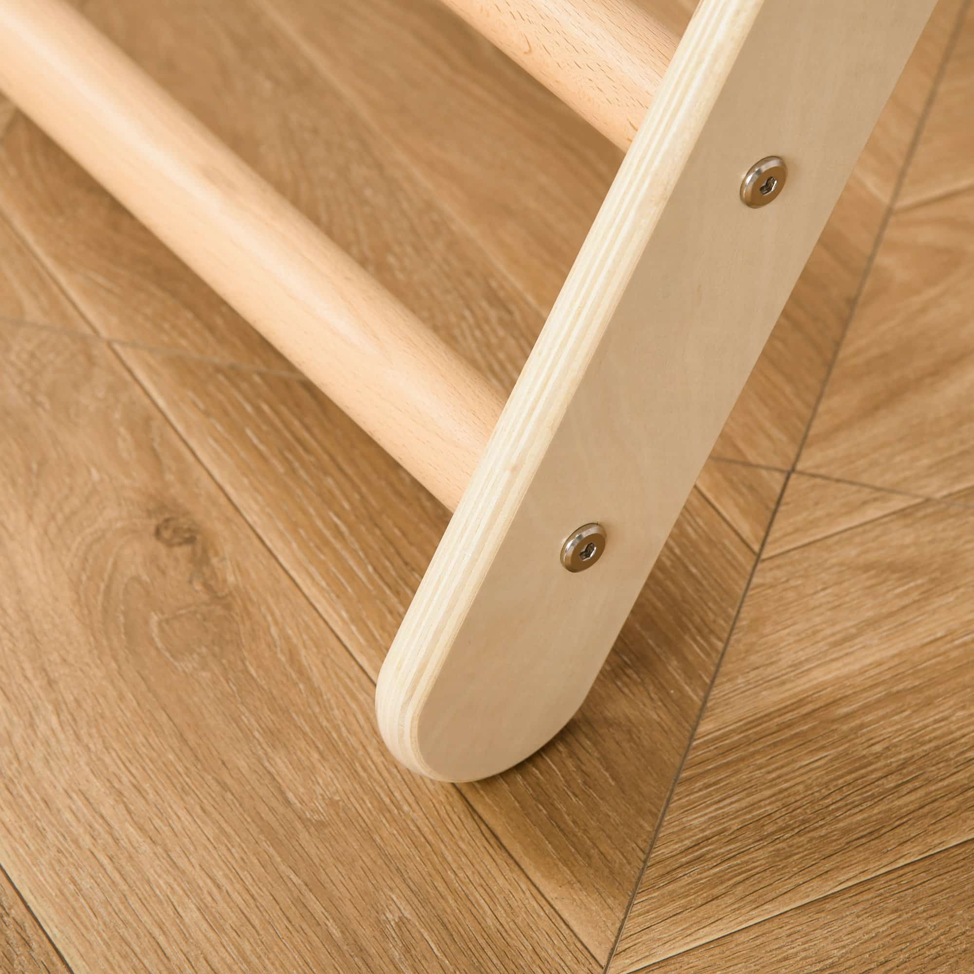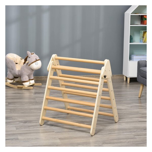De klimdriehoek is vervaardigd uit duurzaam beuken- en berkenmultiplex, waardoor het materiaal solide en stevig is. De driehoekige vorm geeft de klimdriehoek een stabiele stand, wat zorgt voor extra veiligheid tijdens het spelen.