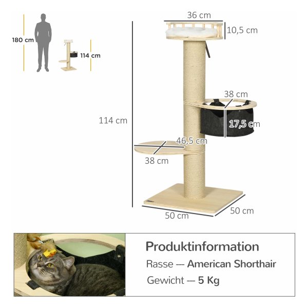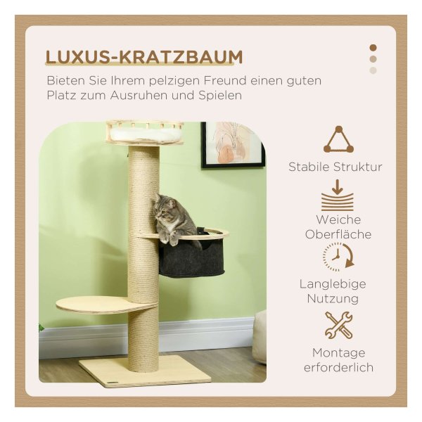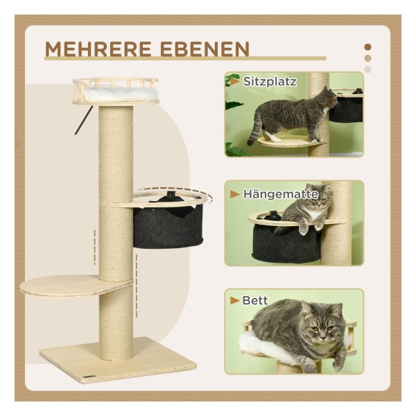 - Het kattenmeubel biedt diverse klimmogelijkheden, zoals een stabiele krabstam, een diepe hangmat en een zittend platform. Hierdoor kan je kat zijn natuurlijke instincten volgen en energie kwijtraken.