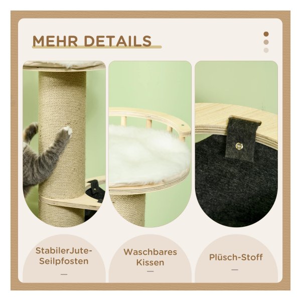 - Het kattenmeubel heeft een zacht kussen op het ligplaatsplatform voor extra comfort. Het kussen kan eenvoudig worden verwijderd en gewassen, zodat je kat altijd een schone slaapplek heeft.
