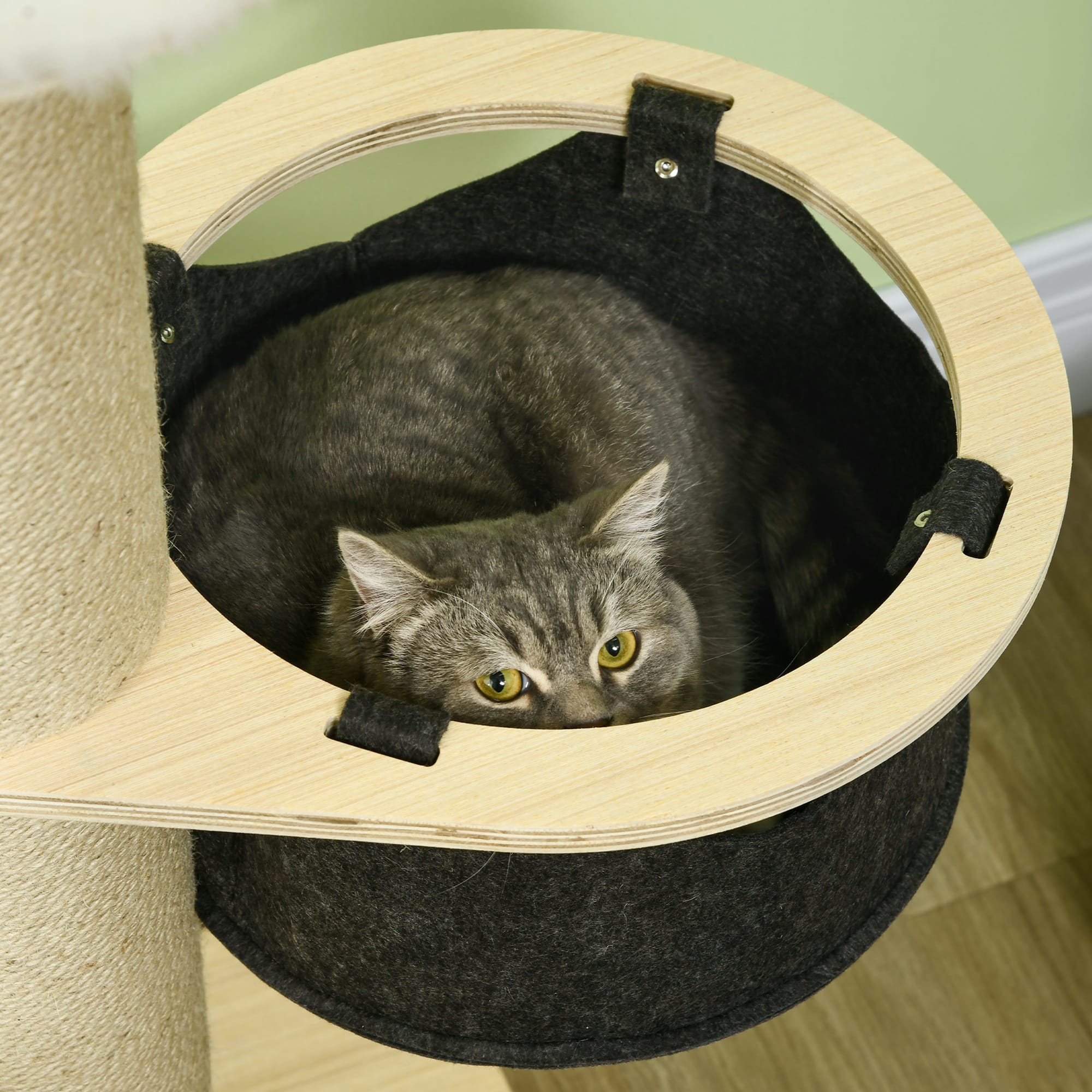 - De grote basisplaat zorgt voor een veilige standaard, waardoor je kat onbezorgd kan spelen en ontspannen.
