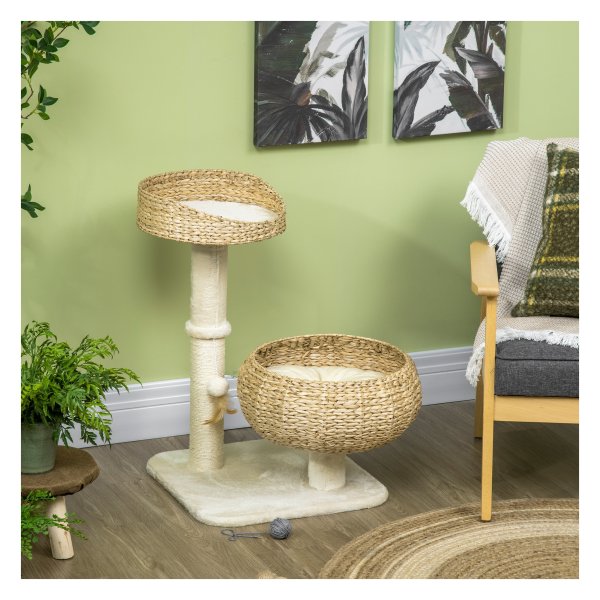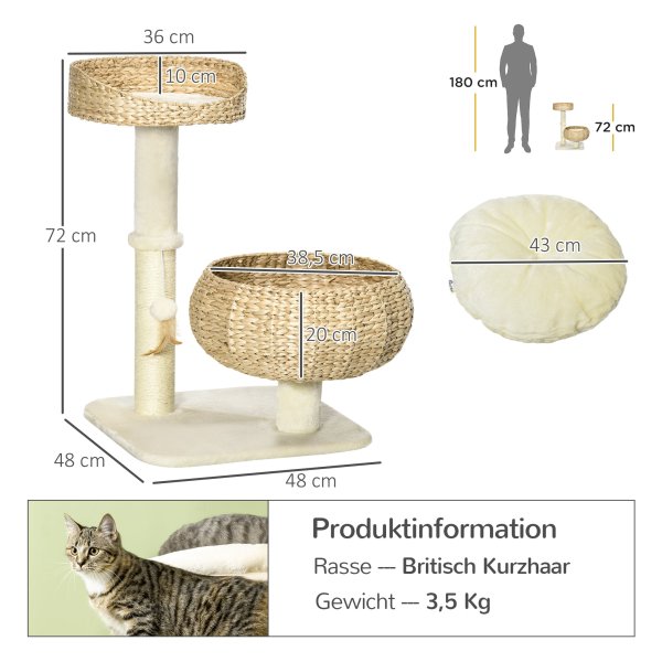Dankzij de ruime afmetingen van 48L x 48B x 72H cm biedt dit kattenmeubel voldoende ruimte voor jouw kat om te spelen en te rusten. De onderste mand met een diameter van 45 cm en de bovenste mand met een diameter van 36 cm bieden variatie in ligplekken, waardoor jouw kat altijd een favoriete plek zal hebben.