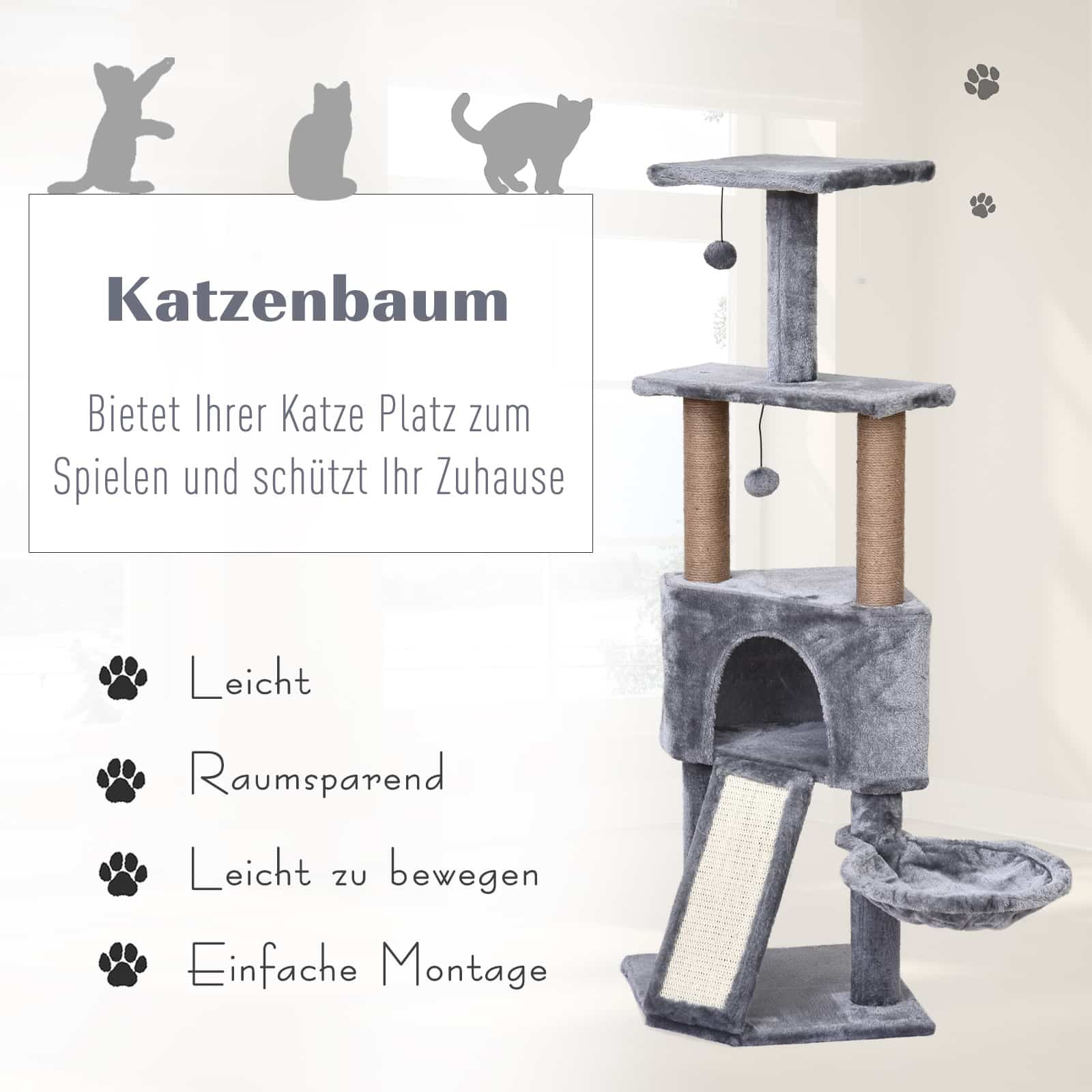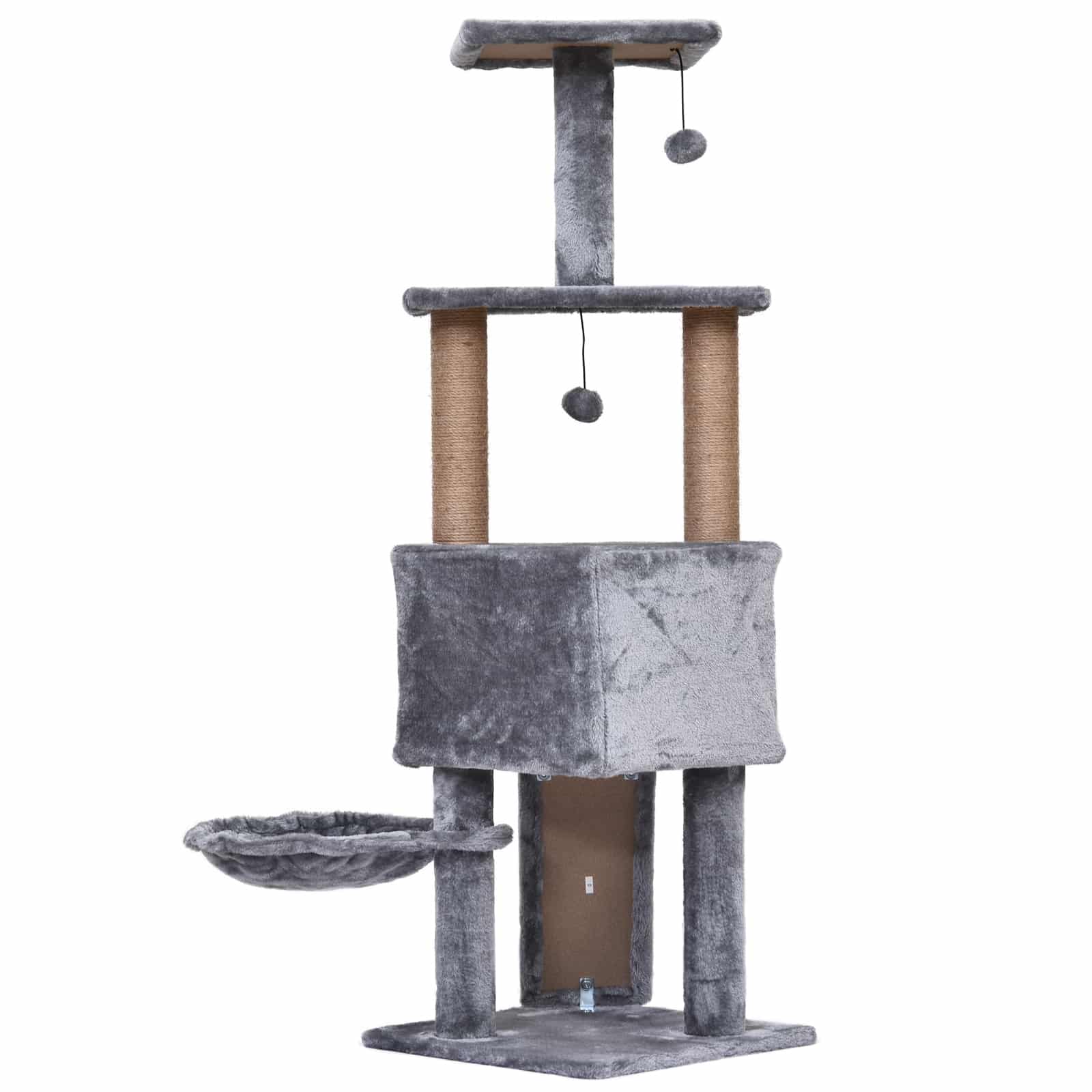 Dankzij de eenvoudige montage is de krabpaal snel in elkaar te zetten en kan jouw kat direct genieten van zijn nieuwe speelparadijs. Bestel nu de kattengrot – krabparadijs – hangend bed – speelballen in grijs en geef jouw kat het comfort en de verrijking die hij verdient!