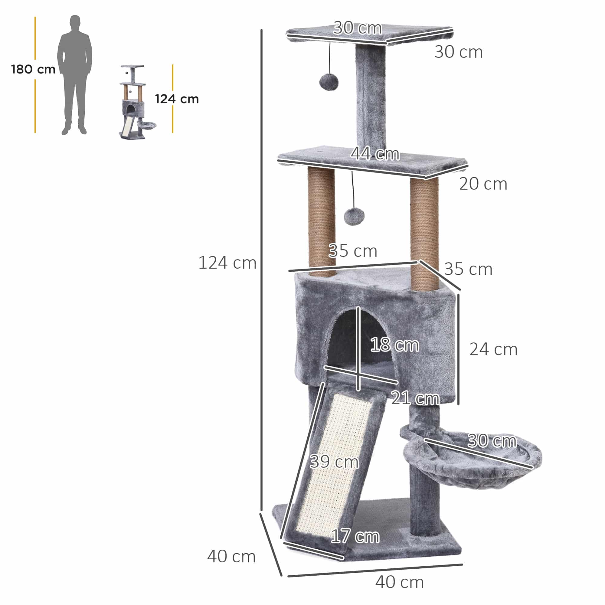 De kattengrot in grijs is de ultieme combinatie van speelplezier, rust en comfort voor jouw geliefde viervoeter. Met deze veelzijdige krabpaal van topkwaliteit bied je jouw kat een krabparadijs, een hangend bed en speelplezier met de bijgevoegde balletjes. Door de grotvormige constructie heeft jouw kat een veilige en knusse plek om te rusten en zich terug te trekken.