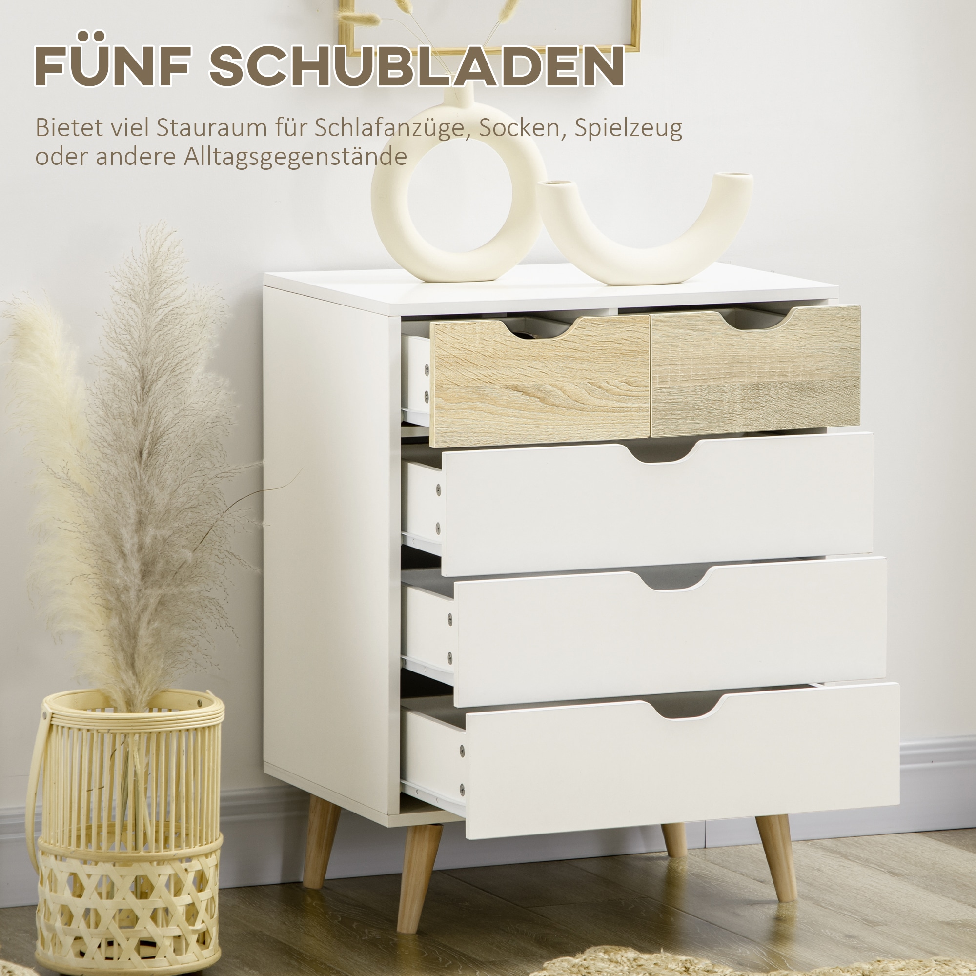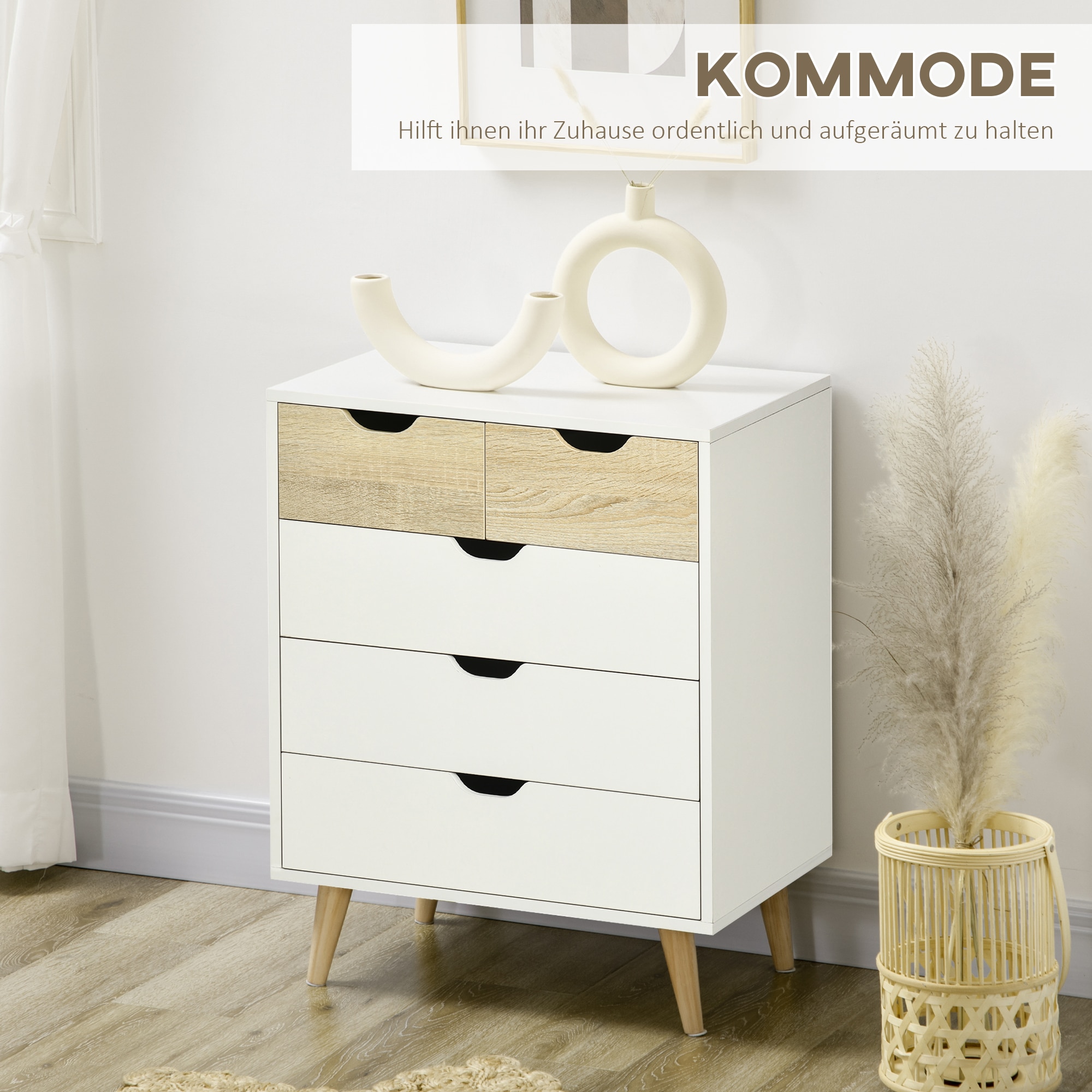 Ladenkast – TrendyLiving – 5 lades – Wit/Lichtbruin