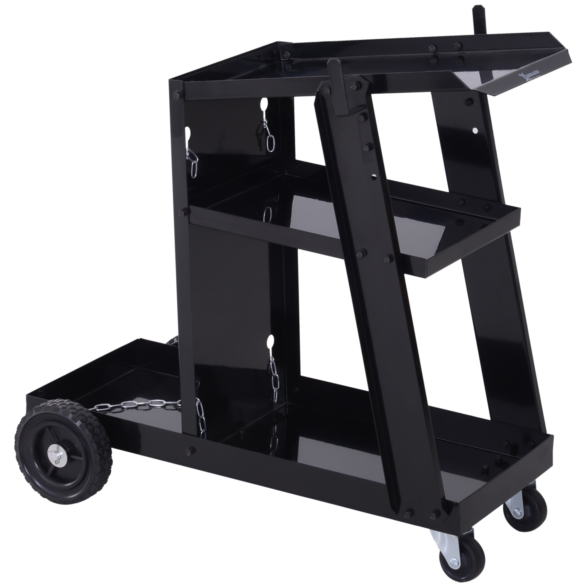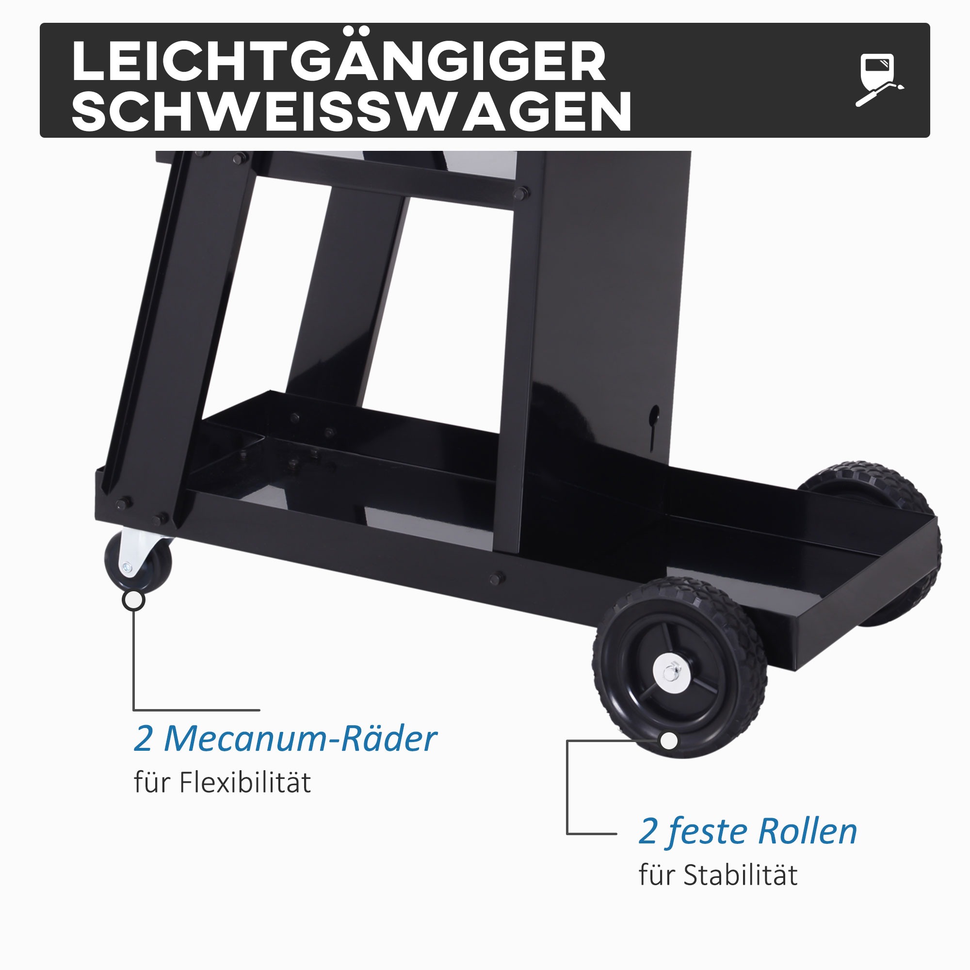 - Met drie aparte opslaggebieden heeft u voldoende ruimte voor uw gasflessen, lasapparatuur, lasmaskers en andere accessoires.