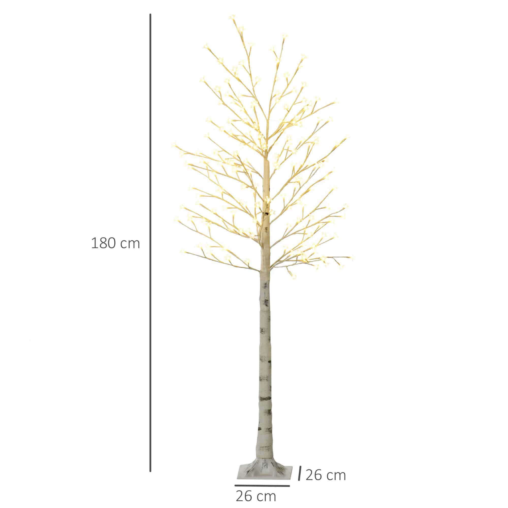 Deze groene kunstboom met LED-verlichting heeft een totale afmeting van 180 cm hoog en 26 x 26 cm breed. Met 180 warm witte LED’s en 15 takken zorgt de kerstboom voor een sfeervolle verlichting die je tuin zal transformeren in een magische plek tijdens de feestdagen.