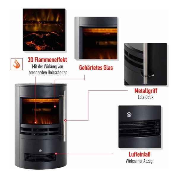 - Cilindrisch ontwerp met vlameffect door LED, los van de verwarmingsfunctie