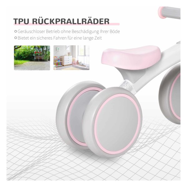 Dankzij het veilige design van dit fietsje zijn er geen zichtbare schroeven die krassen kunnen veroorzaken. De slijtvaste TPU-rebound-wielen zorgen voor een stille en vloerbesparende rit, waardoor zowel jij als je kind zorgeloos kunnen genieten van het fietsen.