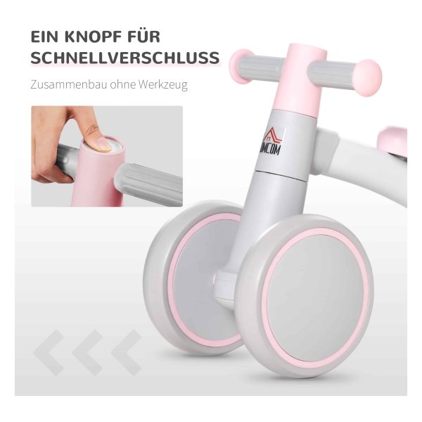 De gevoerde zitting en het gripvaste stuur zorgen voor een veilige grip, terwijl de stabiele en slijtvaste TPU-wielen voor veiligheid en soepelheid zorgen tijdens het rijden. Bovendien is dit loopfietsje voorzien van een quick release-functie, waardoor montage en demontage snel en eenvoudig zijn, zonder gereedschap.