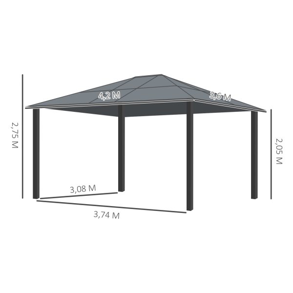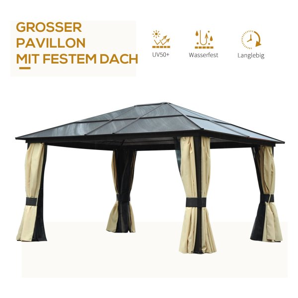 Het frame van het paviljoen is gemaakt van aluminium, een materiaal dat bekend staat om zijn duurzaamheid en roestbestendigheid. Hierdoor kan je jarenlang genieten van dit tuinpaviljoen zonder je zorgen te hoeven maken over eventuele slijtage.