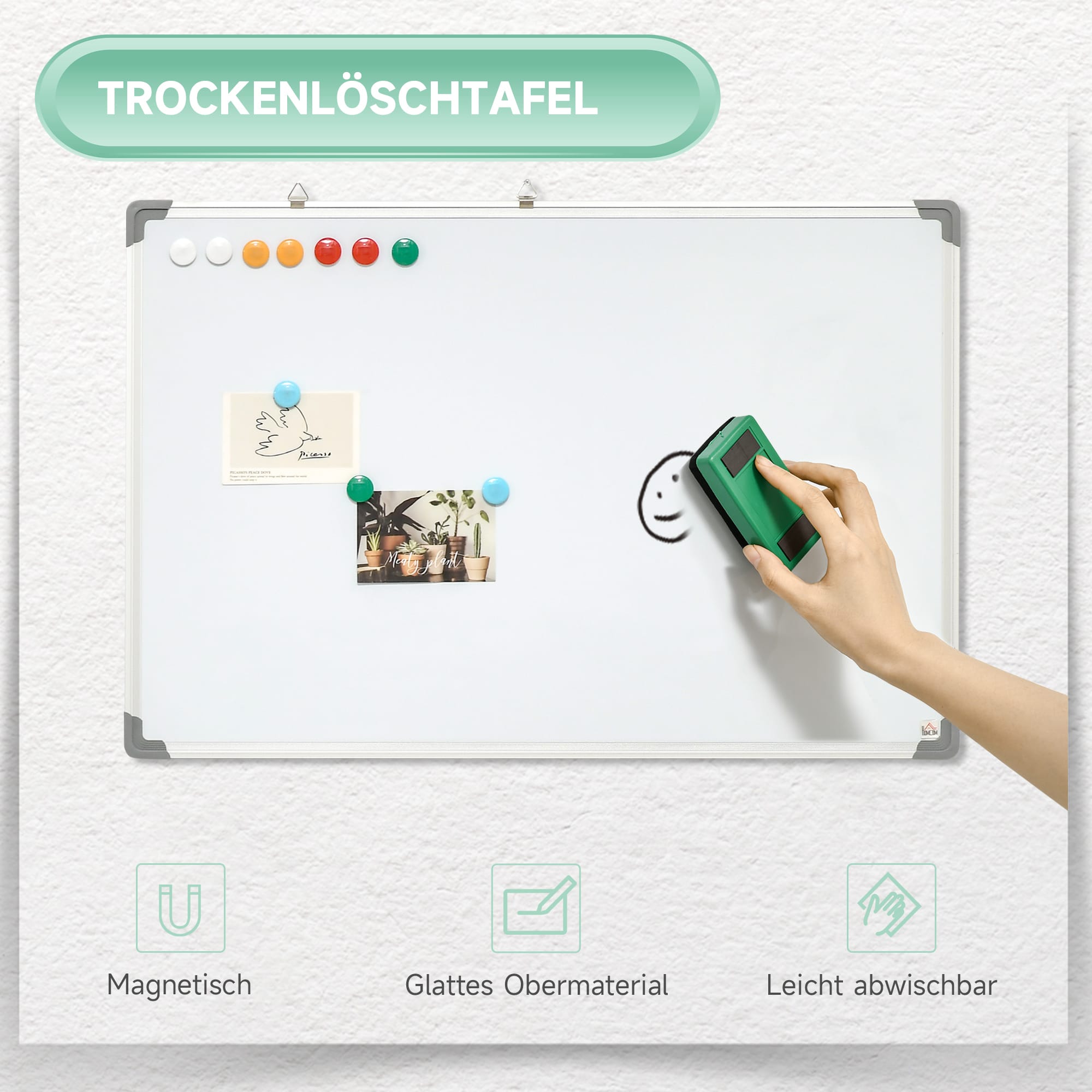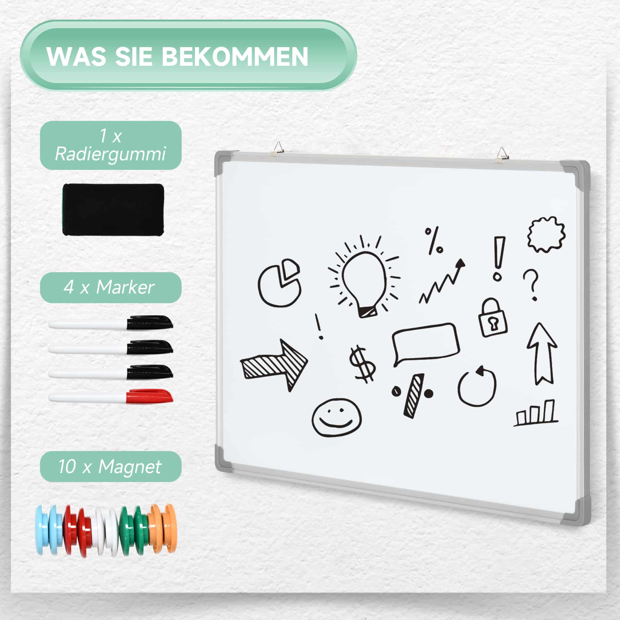 Het whiteboard wordt geleverd met een set van 10 magneten, waardoor u belangrijke documenten en notities kunt bevestigen voor een opgeruimde en georganiseerde werkruimte. De praktische wandmontage zorgt voor een efficiënt gebruik van ruimte, ideaal voor kleinere kantoren of thuiskantoren.