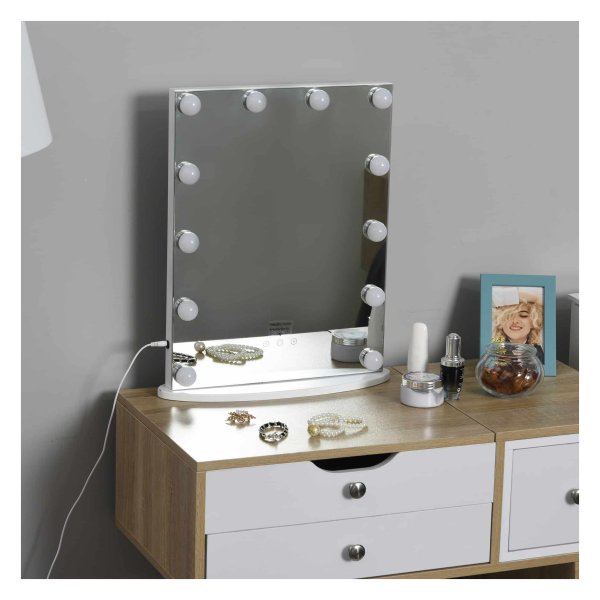 De Hollywood Mirror is uitgerust met een handige USB-aansluiting voor voeding, waardoor je het station gemakkelijk kunt aansluiten op verschillende apparaten. Zo ben je altijd verzekerd van voldoende verlichting tijdens het aanbrengen van make-up, waar je ook bent.