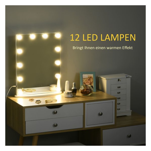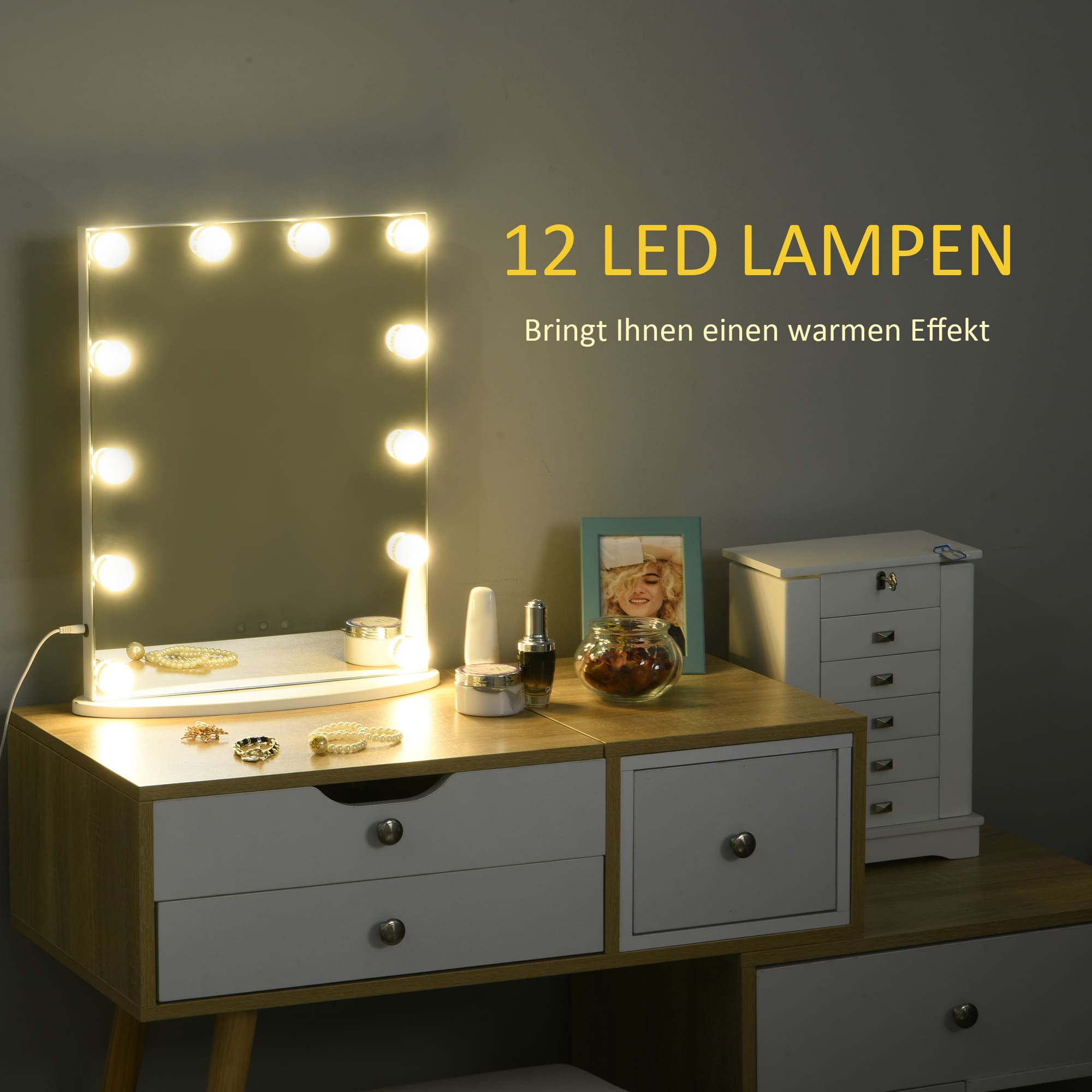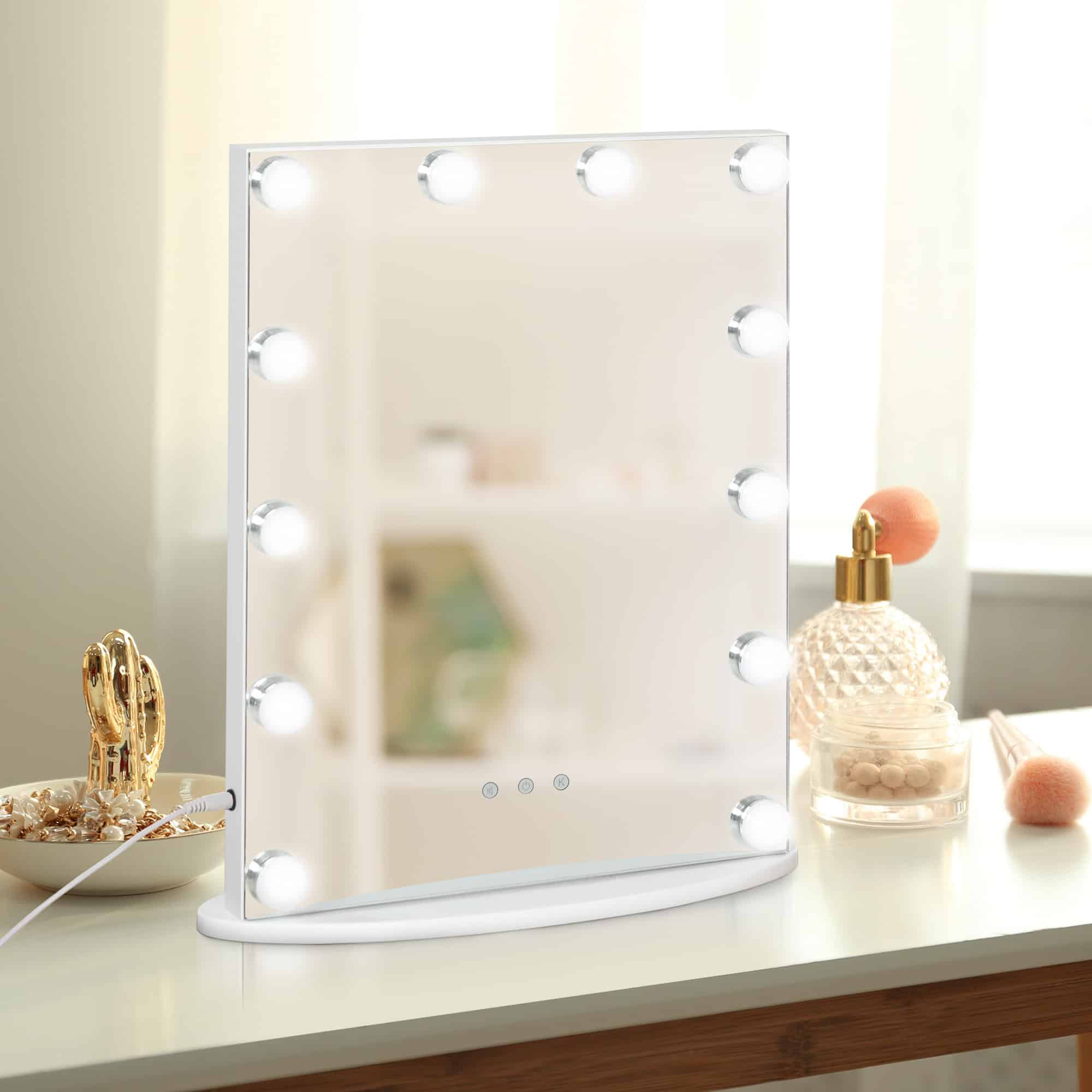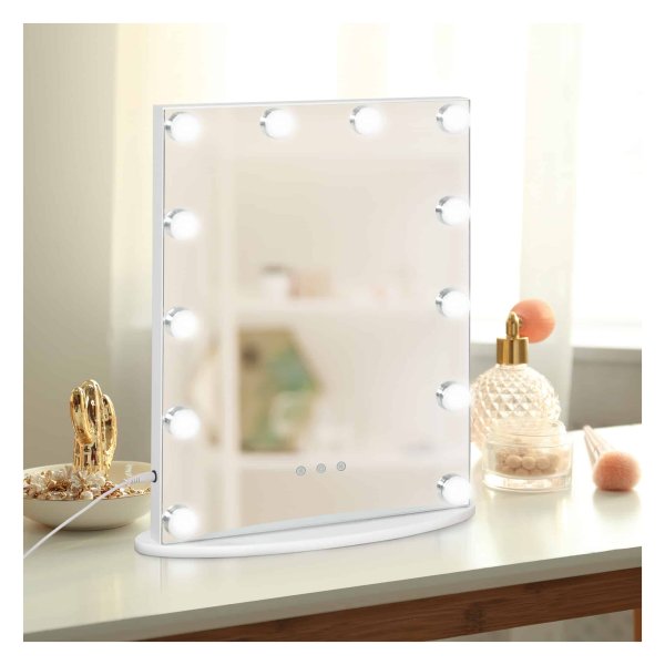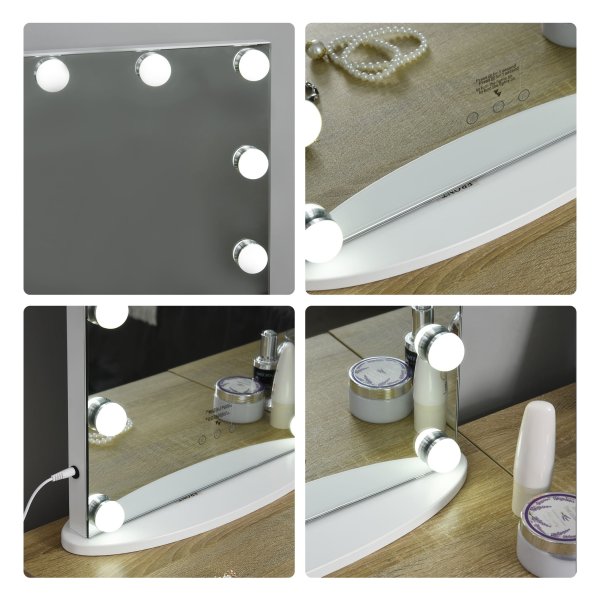 Ontdek het ultieme comfort voor al jouw beautybehoeften met het Hollywood-make-upstation van Zaza Home. Dit make-upstation is een waardevolle toevoeging aan elke kaptafel, kleedkamer of slaapkamer. De 12 dimbare ronde LED-gloeilampen zorgen voor een heldere en duidelijke verlichting tijdens het aanbrengen van make-up, waardoor je altijd een perfect resultaat kunt bereiken.