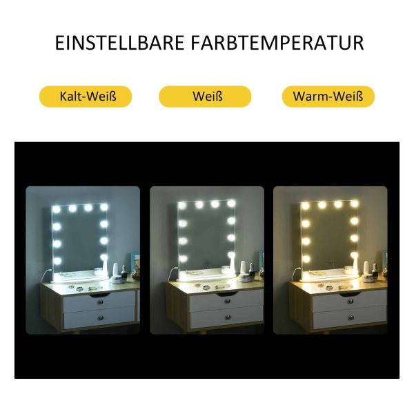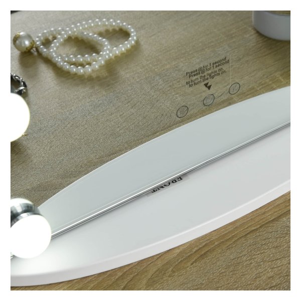 Met 3 verschillende lichtkleuren, waaronder warm wit, wit en koud wit, kun je de verlichting van het make-upstation eenvoudig aanpassen aan elke gelegenheid. Door op de rechterknop te drukken, kun je moeiteloos de gewenste kleur selecteren en zo jouw make-uproutine personaliseren.