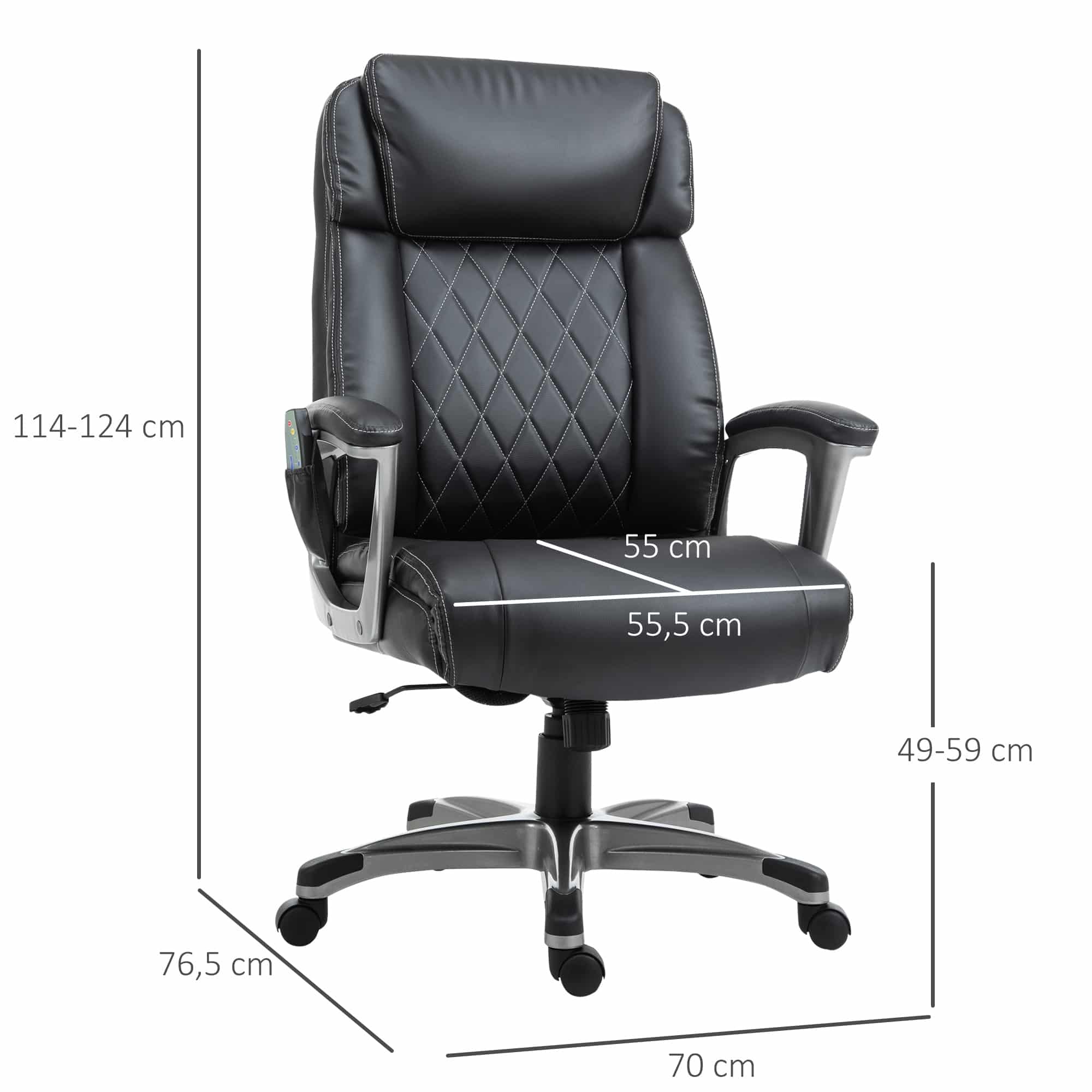 - Afmetingen: 70B x 76.5T x 114-124H cm