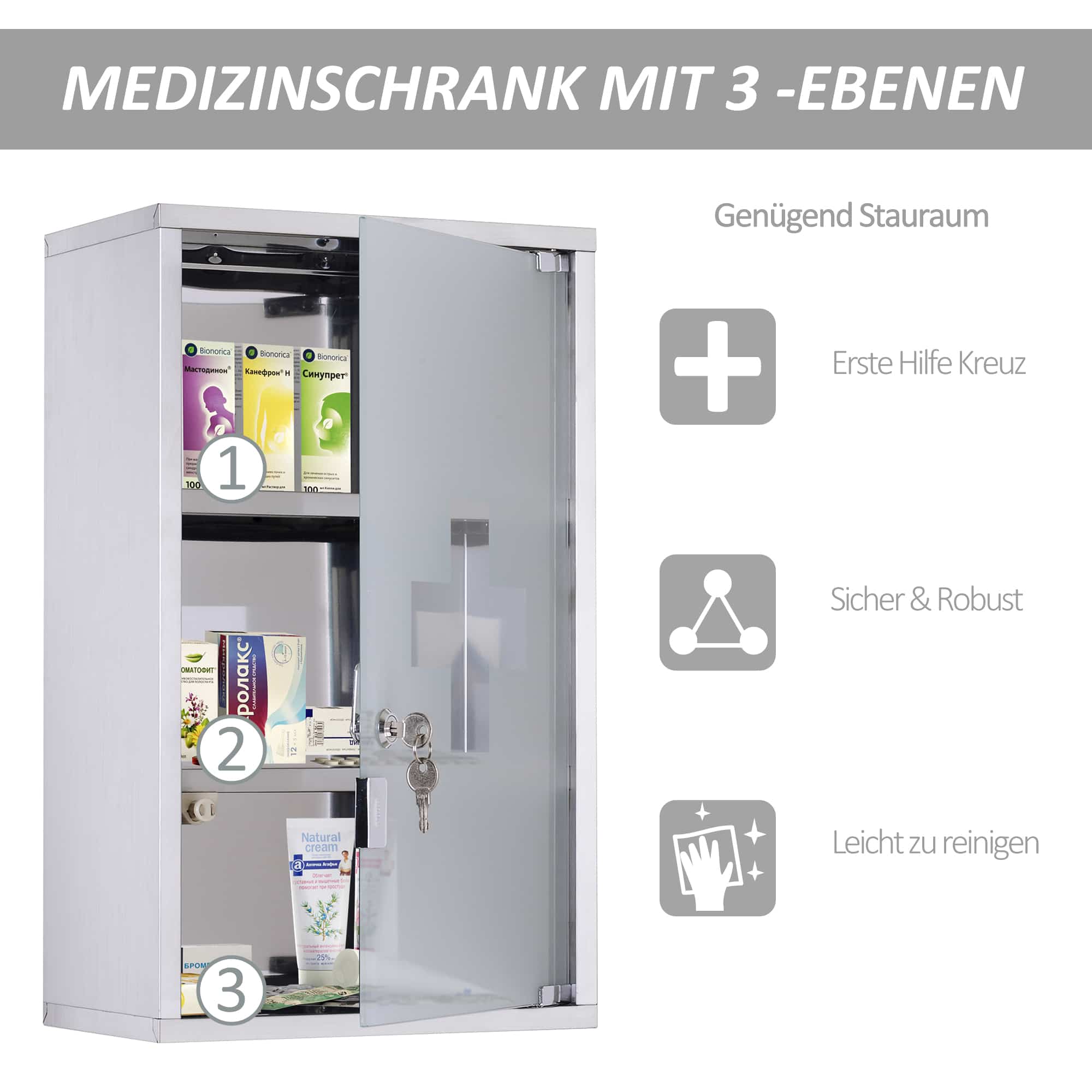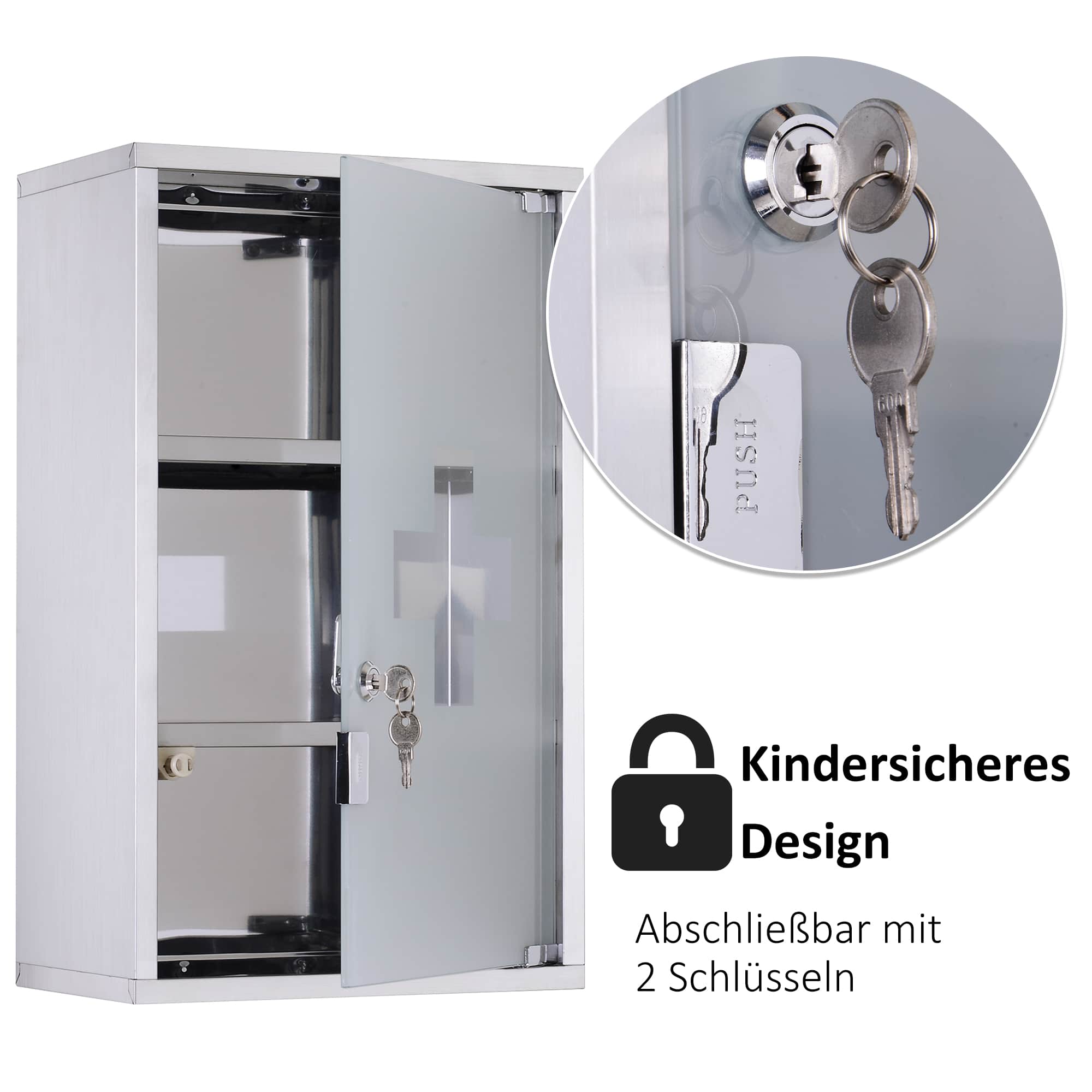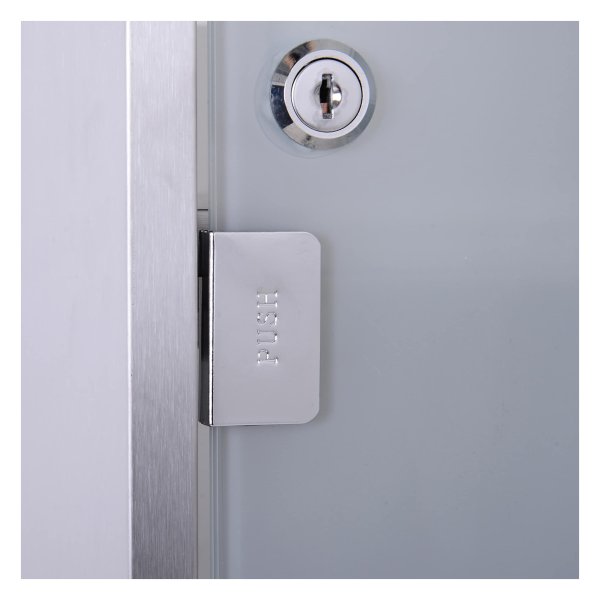 - De deur is vervaardigd van satijnglas met een EHBO-kruis voor een visueel aantrekkelijke uitstraling.
