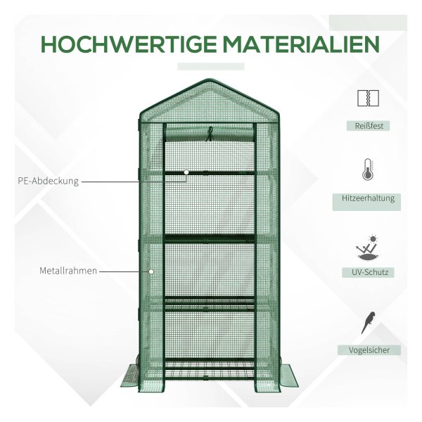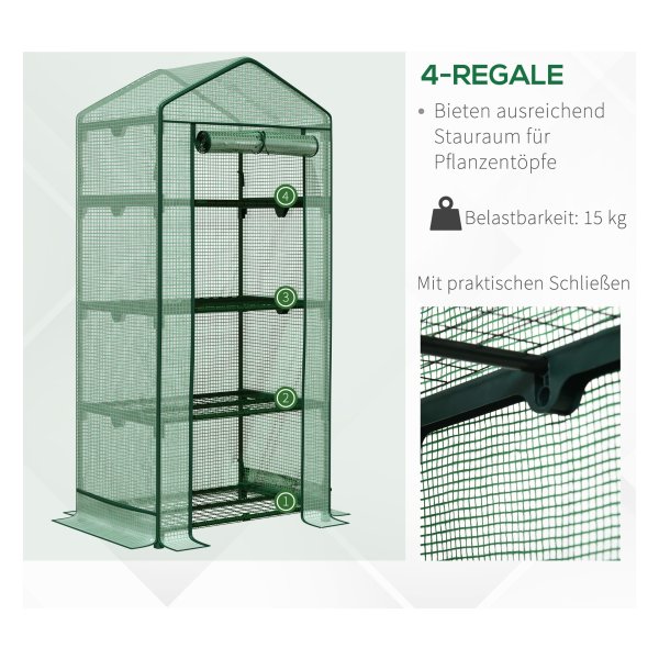 Met de Kas – Garden Gear – 4 planken met rollende deur in een mooie groene kleur, brengt u de natuur naar uw eigen tuin of balkon. Deze compacte kas is perfect voor het kweken van uw favoriete planten, groenten en bloemen, zelfs als u weinig ruimte heeft. Het stevige metalen frame zorgt ervoor dat de kas stabiel blijft, terwijl de hoogwaardige foliebedekking uw planten beschermt tegen de kou en schadelijke UV-stralen.