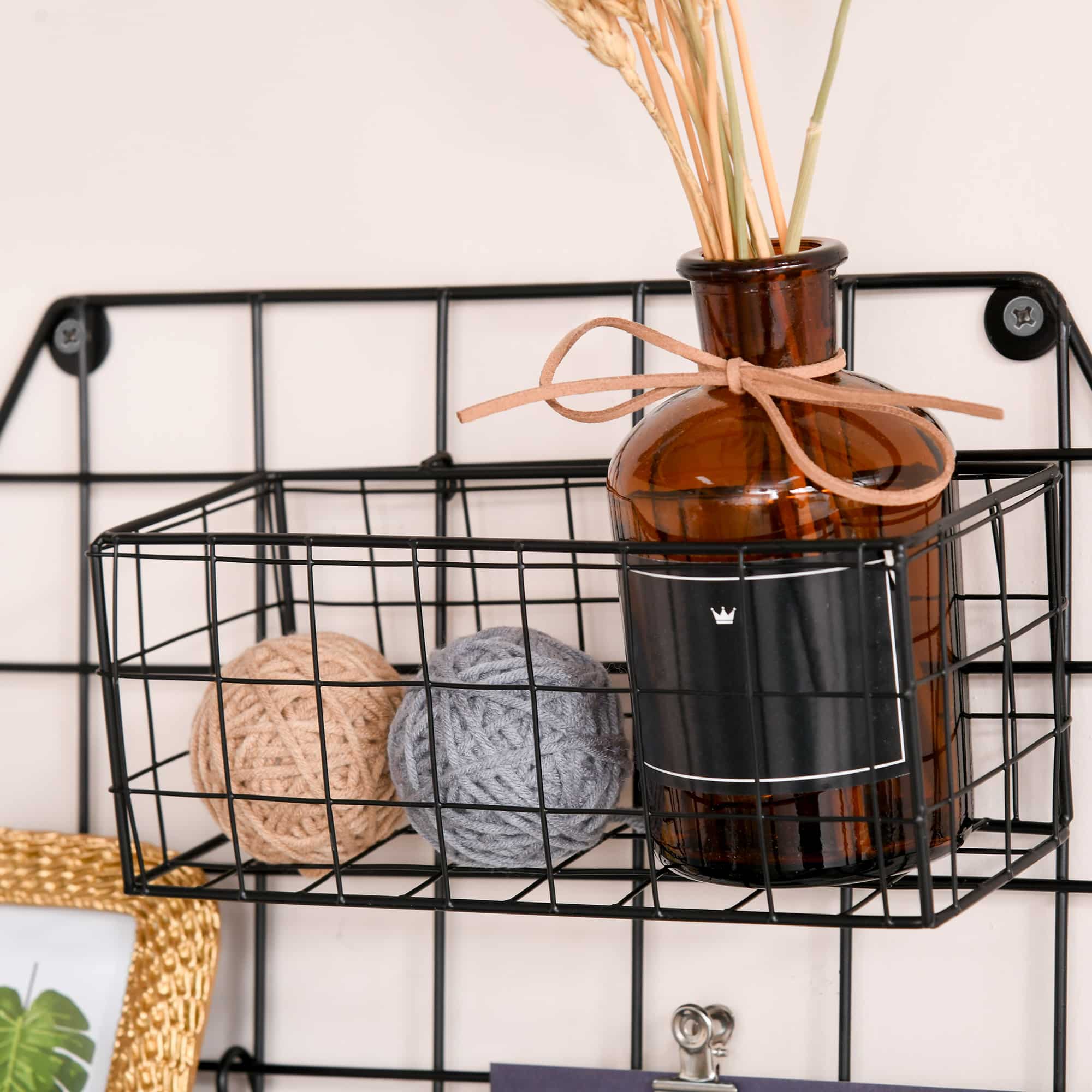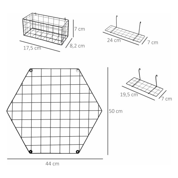 Als u besluit om dit product aan te schaffen, ontvangt u 1 x muurrooster, 1 x mand, 2 x plank, 3 x clips en montage-instructies. Dit alles zorgt ervoor dat u snel en gemakkelijk aan de slag kunt met het decoreren van uw ruimte.