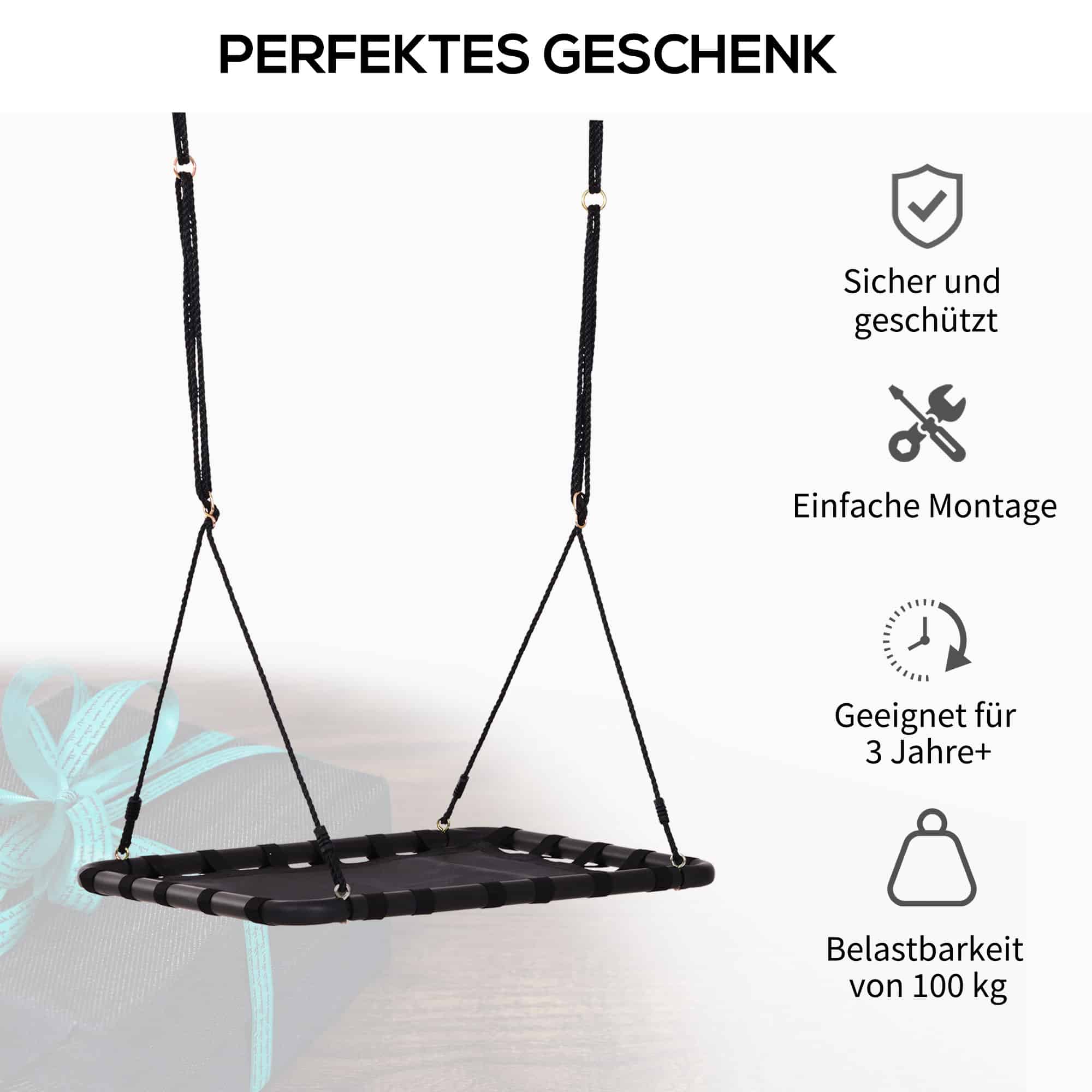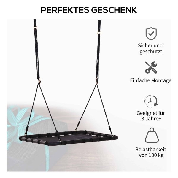 De schommelstoel heeft een draagvermogen van maximaal 100 kg, waardoor zowel kinderen als volwassenen comfortabel kunnen schommelen zonder zorgen over stabiliteit.