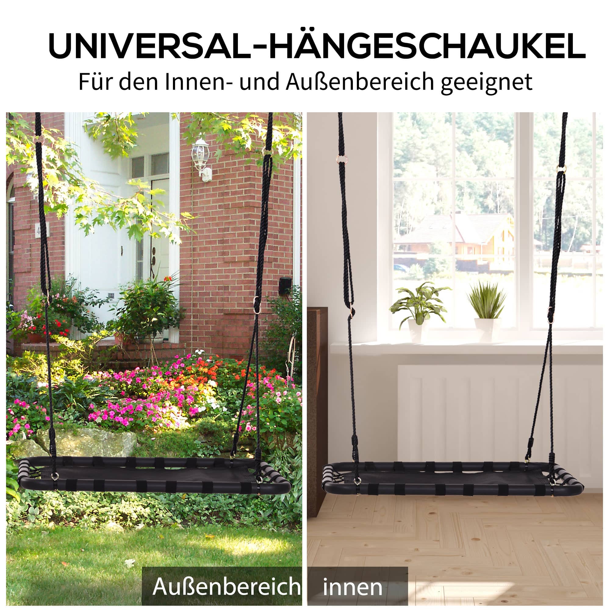 Deze schommelstoel is ontworpen voor zowel binnen als buiten. Of je nu wilt relaxen in de tuin, op het balkon of tijdens een kampeertrip, deze schommelstoel zorgt voor uren comfort en plezier.