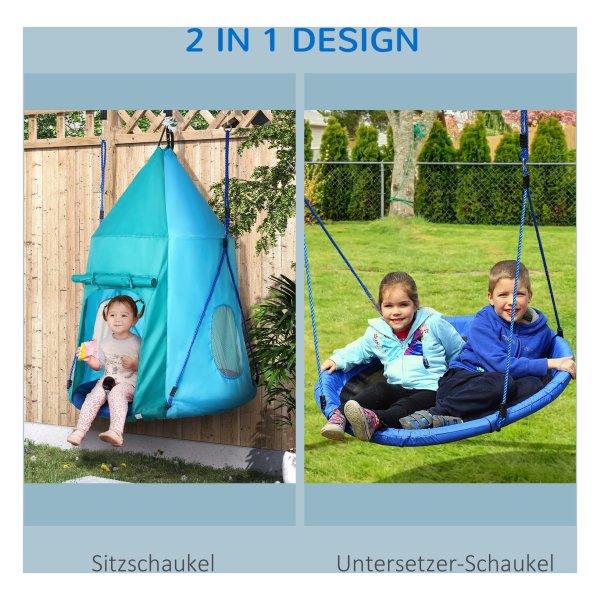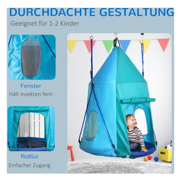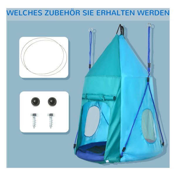 De Kinderschommeltent in het blauw wordt geleverd inclusief: