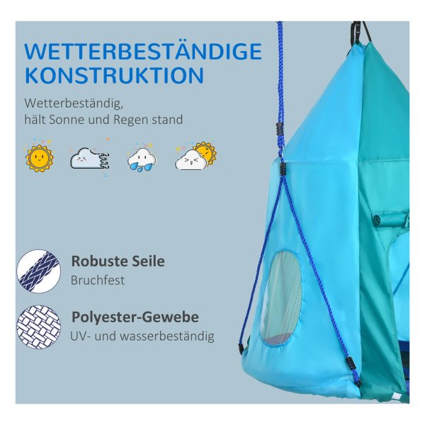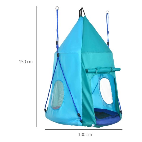 De kinderschommeltent biedt een comfortabele en veilige ruimte om te spelen en te schommelen. De tent is gemaakt van UV- en waterbestendig polyester, waardoor je kinderen beschermd zijn tegen wind, regen en zon. Daarnaast heeft de tent een venster voor ventilatie en een helder zicht naar buiten.