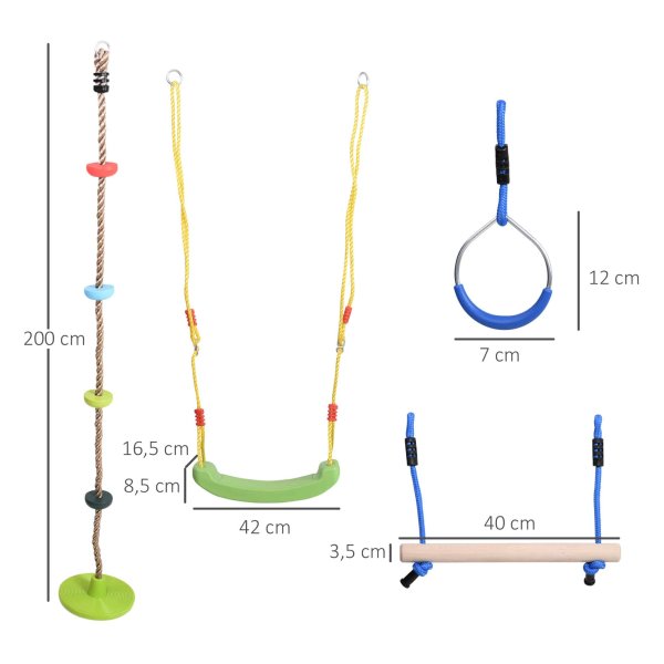 Deze hangende obstakels set bevat klimstokken, turnringen, klimtouwen, geknoopte vuisten en schommels, waardoor je kinderen verschillende speelmogelijkheden hebben om zich te vermaken met hun vriendjes. Door de variatie aan obstakels kunnen ze hun behendigheid en doorzettingsvermogen ontwikkelen terwijl ze plezier hebben.