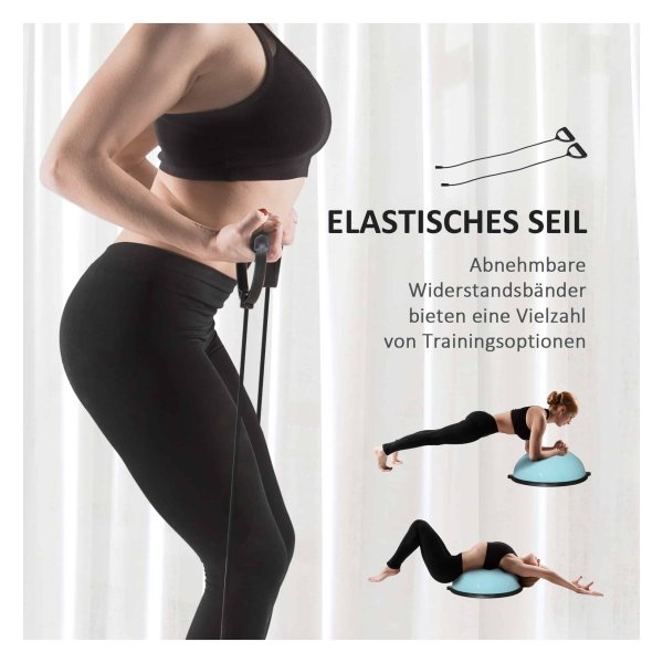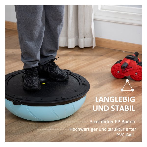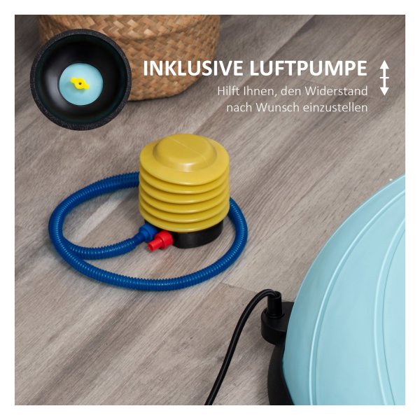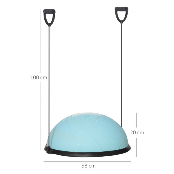 De Balans Trainer in lichtblauw en zwart is gemaakt van hoogwaardige materialen zoals PP en PVC. De totale afmetingen zijn Ø58 x 20H cm, met een diameter van 54 cm voor de oefenbal en een basis van 3 cm. Daarnaast heeft de bal een laadvermogen van maar liefst 100 kg en wordt geleverd inclusief een trainingstouw van 100 cm en een voetpomp.