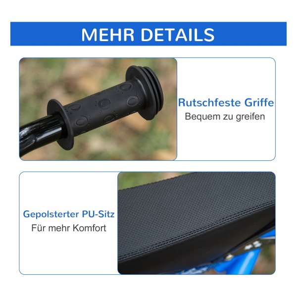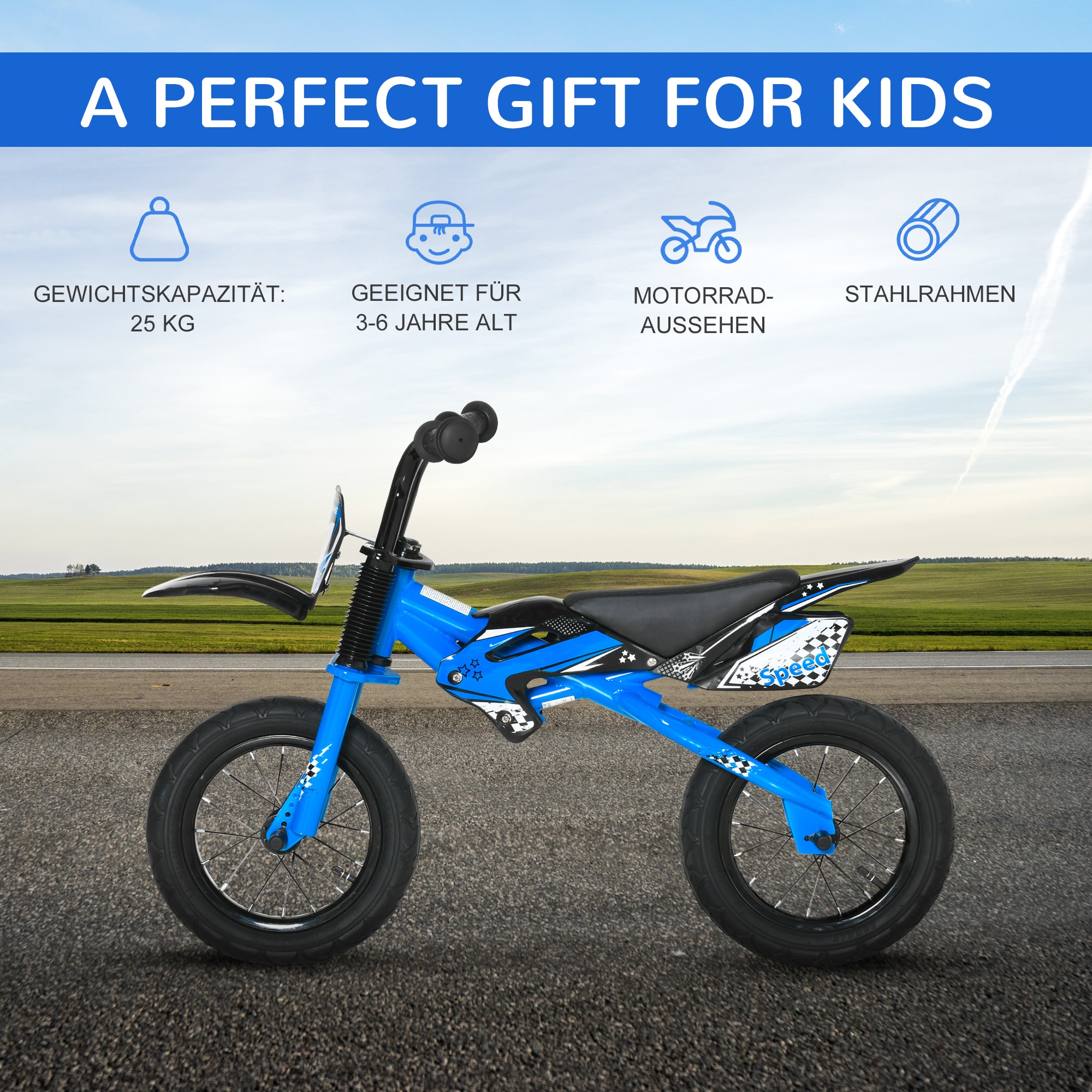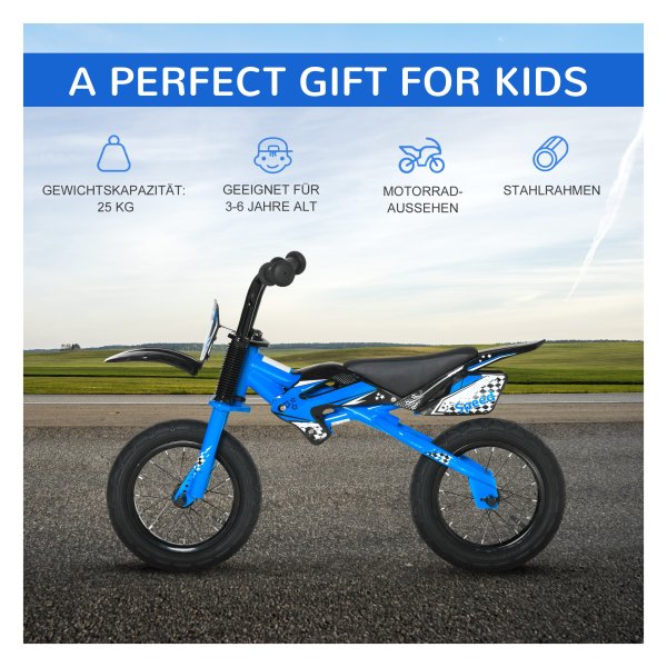 Met zijn leuke en spannende motoruitstraling zal de kinderfiets van Zaza Home in blauw alle kinderen aanspreken. De comfortabele leerzitting en het gripvaste stuur zorgen voor urenlang rijplezier voor je kind, terwijl ze de wereld om hen heen verkennen.