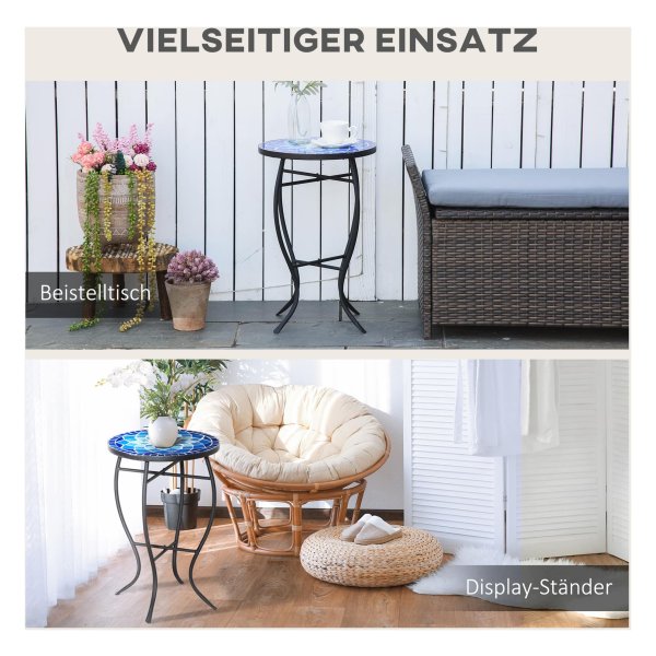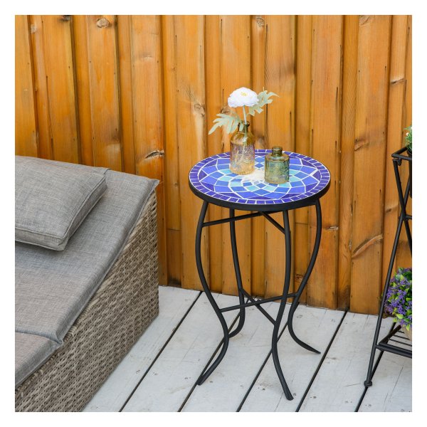 Het ronde tafelblad van de mozaekbloemkruk is voorzien van een uniek mozaïekontwerp, waardoor het een speciale charme toevoegt aan uw buitenruimte. Het lichte maar stabiele frame maakt het eenvoudig te verplaatsen en te gebruiken waar u maar wilt.