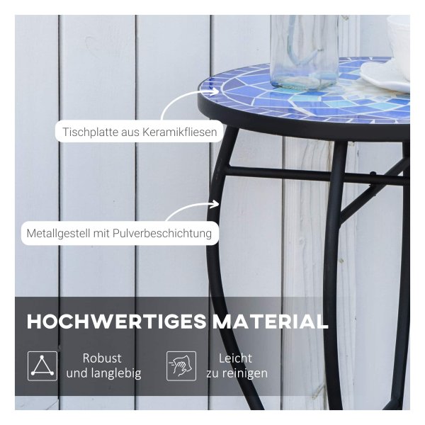 Het keramische materiaal zorgt ervoor dat het oppervlak gemakkelijk schoon te maken is – gewoon afvegen met een vochtige doek en het is weer zo goed als nieuw. Dit maakt het perfect voor gebruik tijdens warme zonnige dagen met een drankje naar keuze.