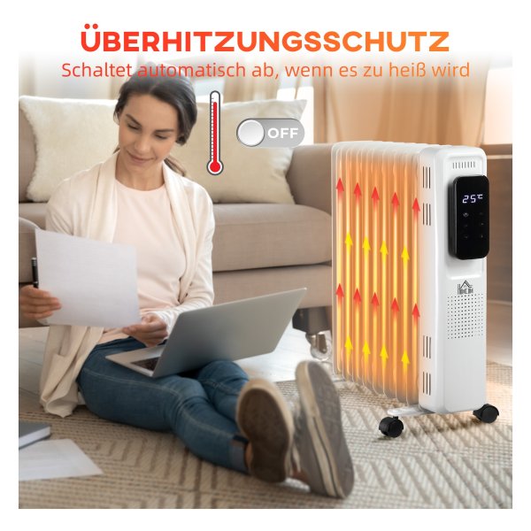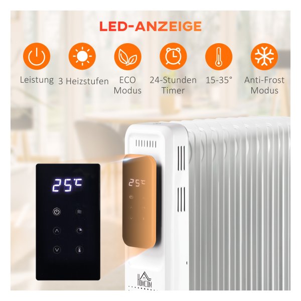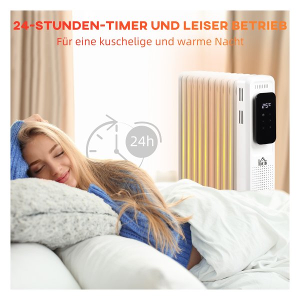 De Elektrische Radiator straalt niet alleen efficiënte warmte uit, maar zorgt er ook voor dat de natuurlijke vochtigheid in de kamer behouden blijft. Dankzij de 9 verwarmingsribben en 3 vermogensniveaus worden kamers snel en effectief verwarmd, met een bereik van 12-20 m². Bovendien kun je met de 24-uurs timer de radiator naar wens in- of uitschakelen.