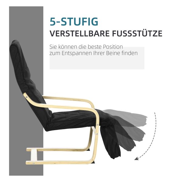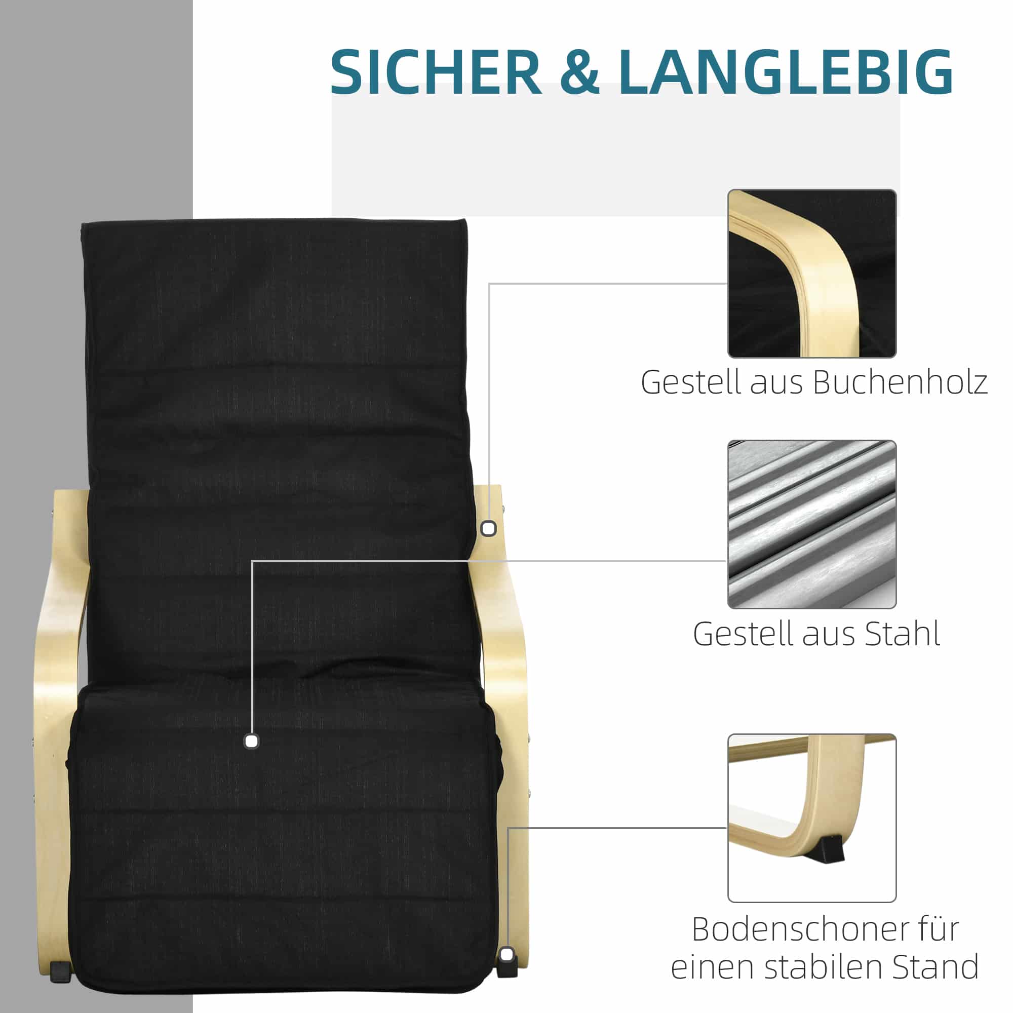 Schommelstoel – RelaxMeubels – Verstelbaar voetgedeelte – Linnen look – Zwart
