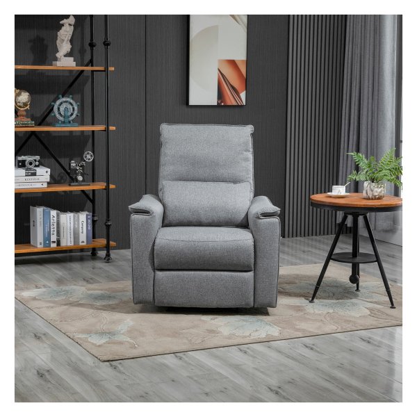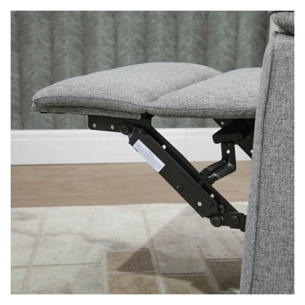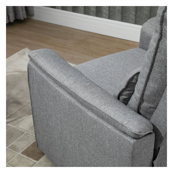 De tv-fauteuil is uitgevoerd in een stijlvolle grijze kleur en is vervaardigd van hoogwaardige materialen zoals linnen-touch polyester stof, schuim en staal. De totale afmetingen van de fauteuil zijn 83 cm breed, 90 cm diep en 104 cm hoog in opgerichte positie. In ligstand meet de fauteuil 83 cm breed, 160.5 cm diep en 84 cm hoog.