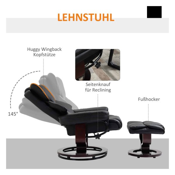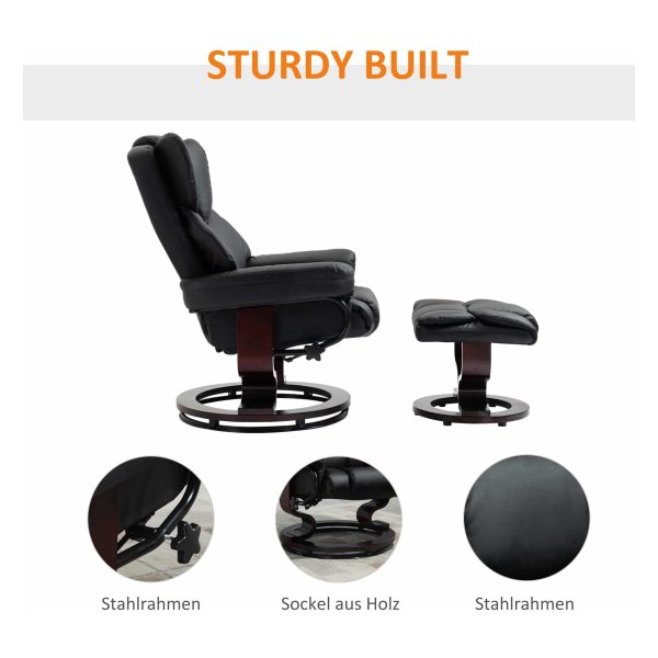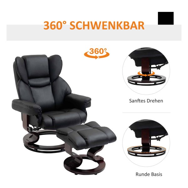 Relaxfauteuil – Zaza Home – Draaibare TV Stoel – Ligfunctie – Zwart