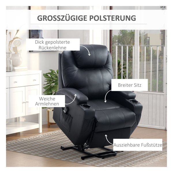 De TV-fauteuil – Relax Deluxe – Verstelbaar – Zwart wordt geleverd met een externe controle voor gemakkelijke bediening. De veerkrachtige zitting zorgt ervoor dat je moeiteloos kunt gaan zitten en opstaan. En het beste van alles? We leveren het artikel gratis aan jouw voordeur, dus zorg ervoor dat je het juiste adres en telefoonnummer opgeeft bij het bestellen. Waar wacht je nog op? Laat je verwennerij beginnen met deze luxe TV-fauteuil!