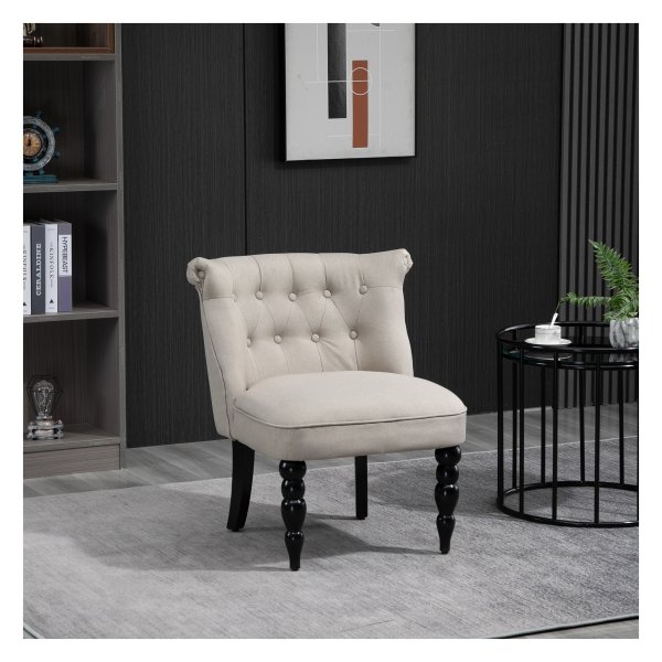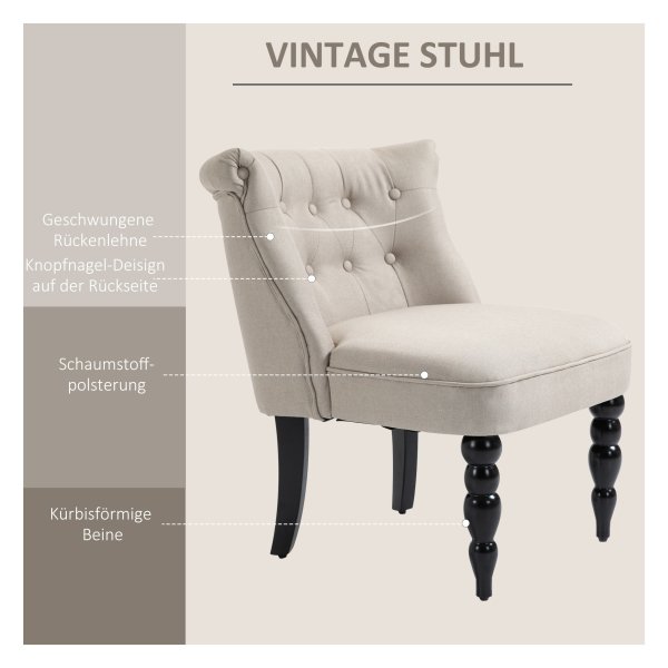 Fauteuil – Retro Comfort – Linnen Bekleding – Beige/Zwart